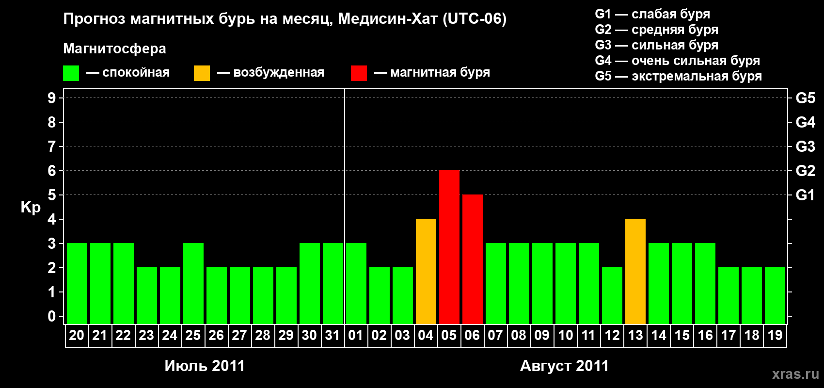 Прогноз магнитных бурь в Медисин-Хате — 20 июля 2011 года