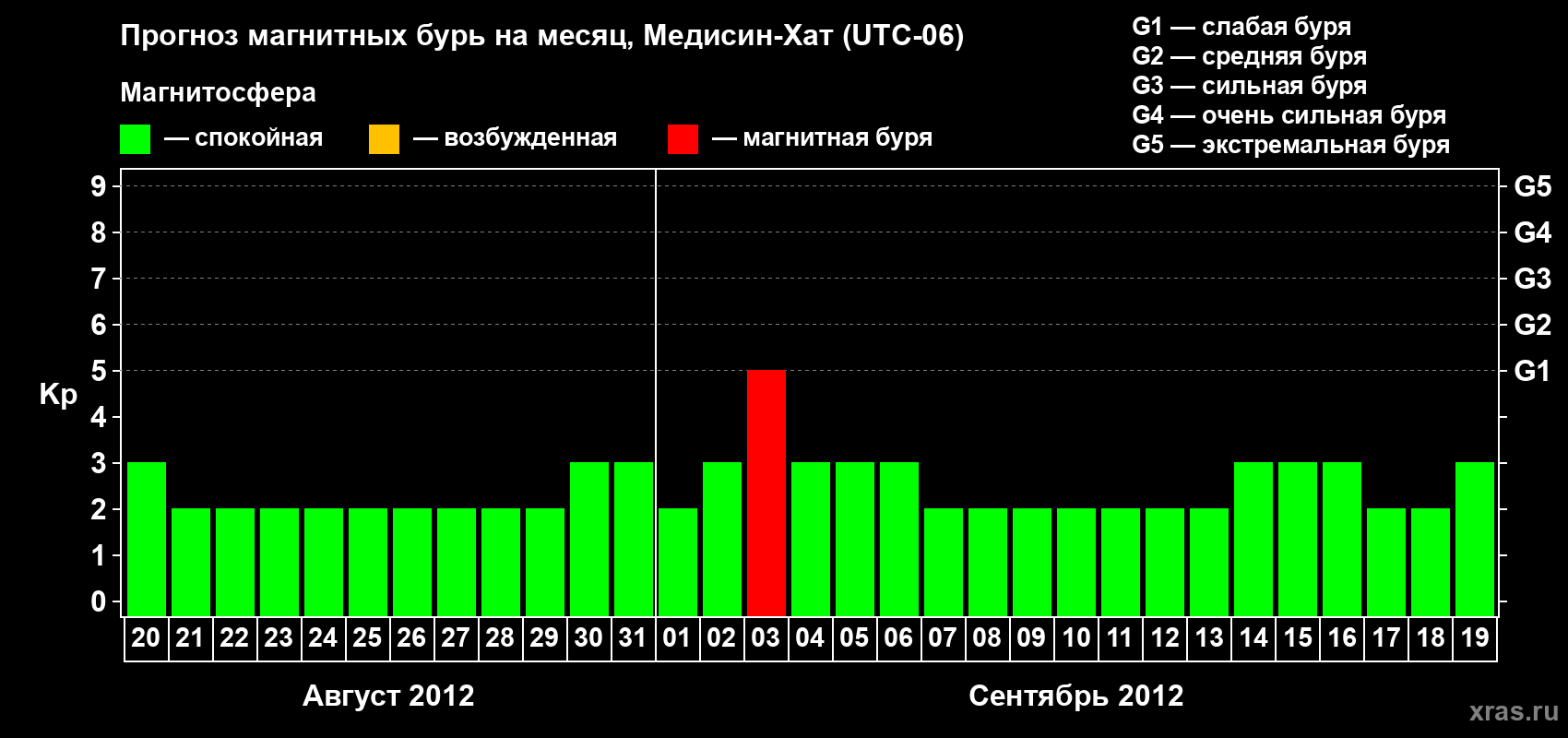Прогноз магнитных бурь в Медисин-Хате — 20 августа 2012 года