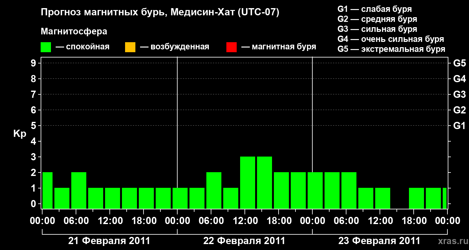 Прогноз магнитных бурь в Медисин-Хате — 21 февраля 2011 года