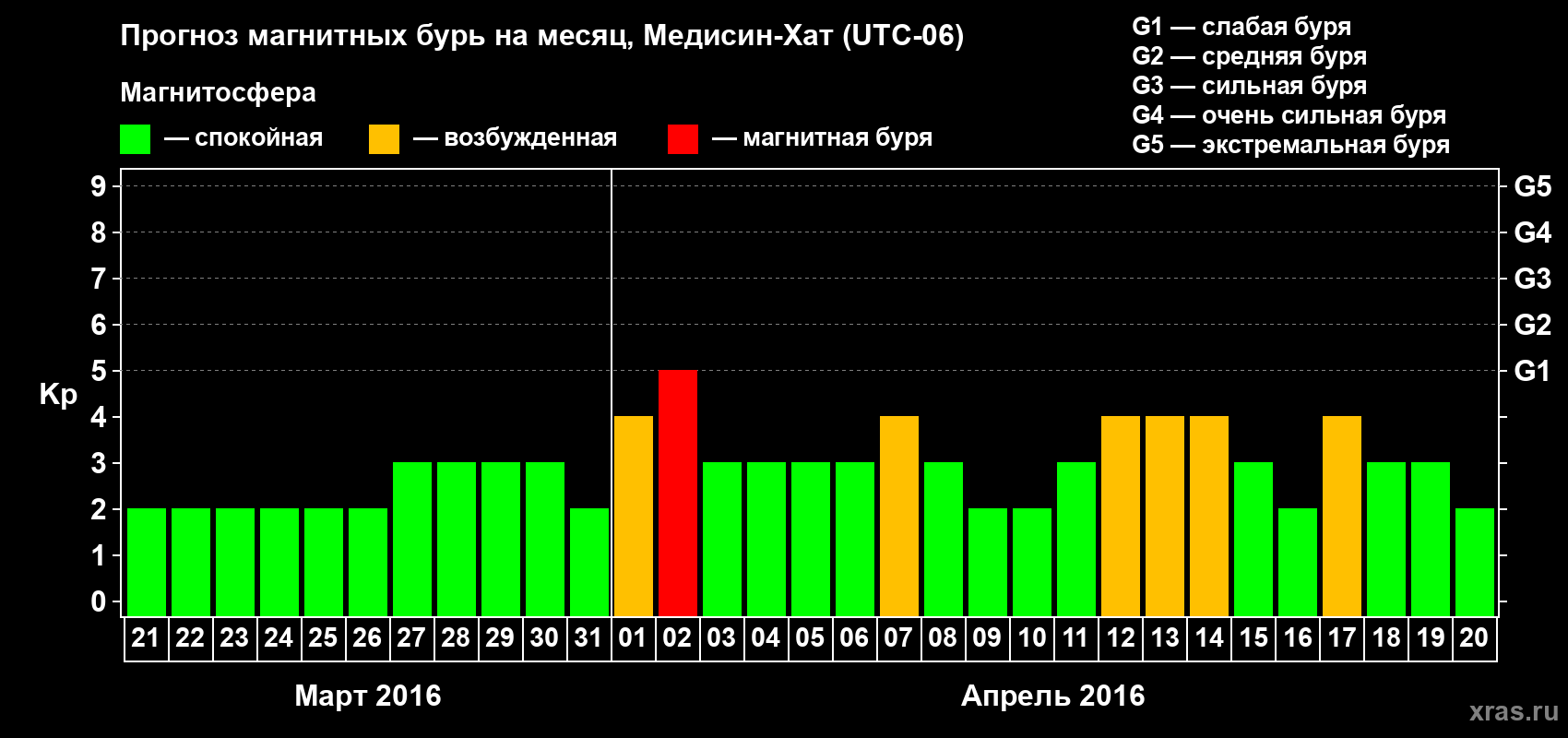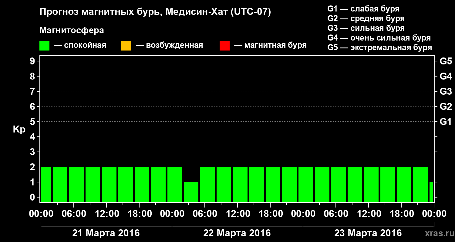 Прогноз магнитных бурь в Медисин-Хате — 21 марта 2016 года