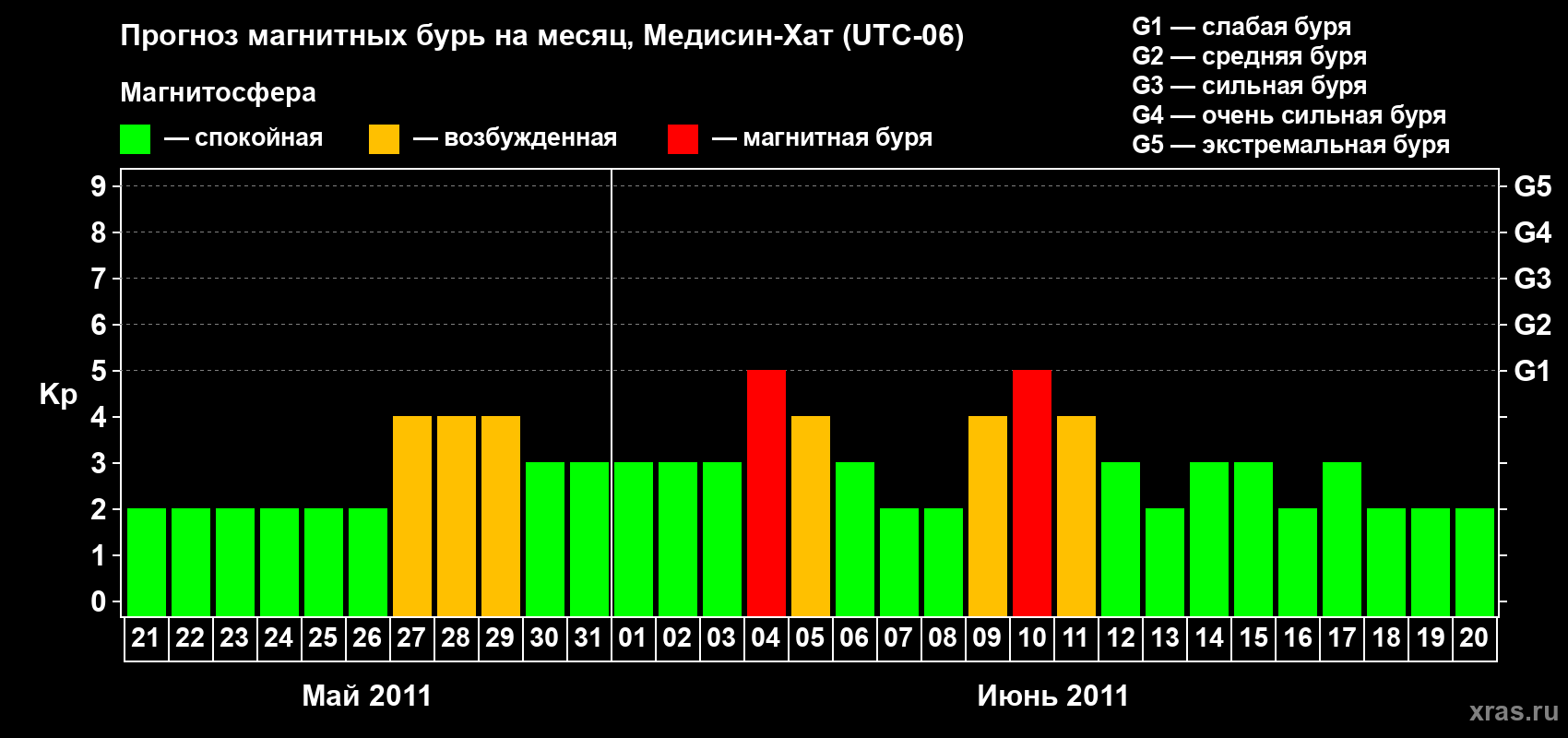 Прогноз магнитных бурь в Медисин-Хате — 21 мая 2011 года