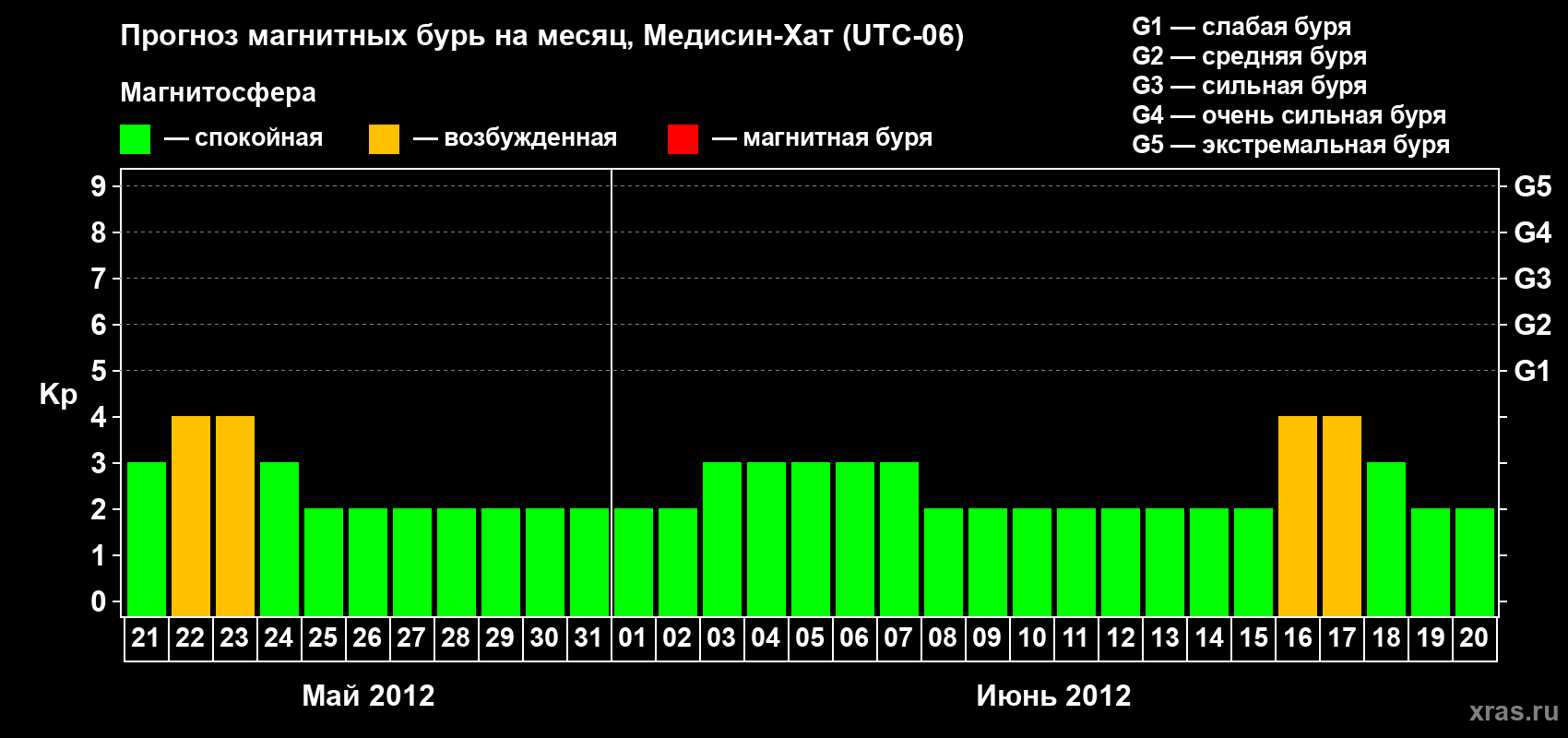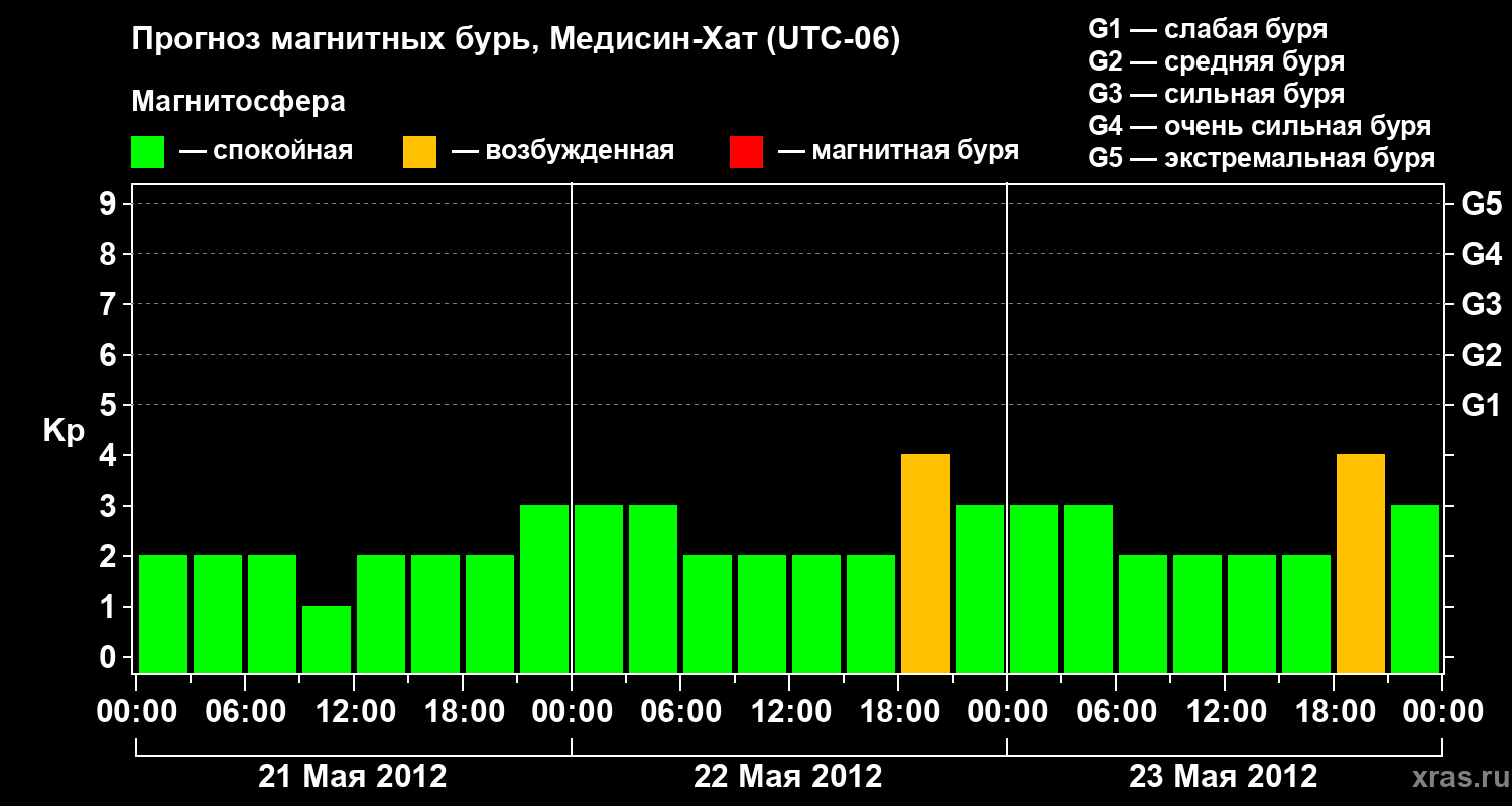 Прогноз магнитных бурь в Медисин-Хате — 21 мая 2012 года