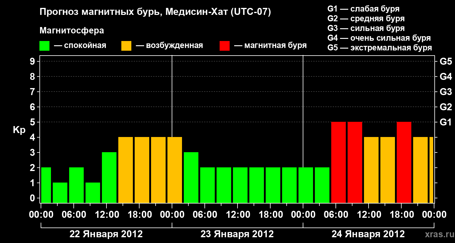 Прогноз магнитных бурь в Медисин-Хате — 22 января 2012 года