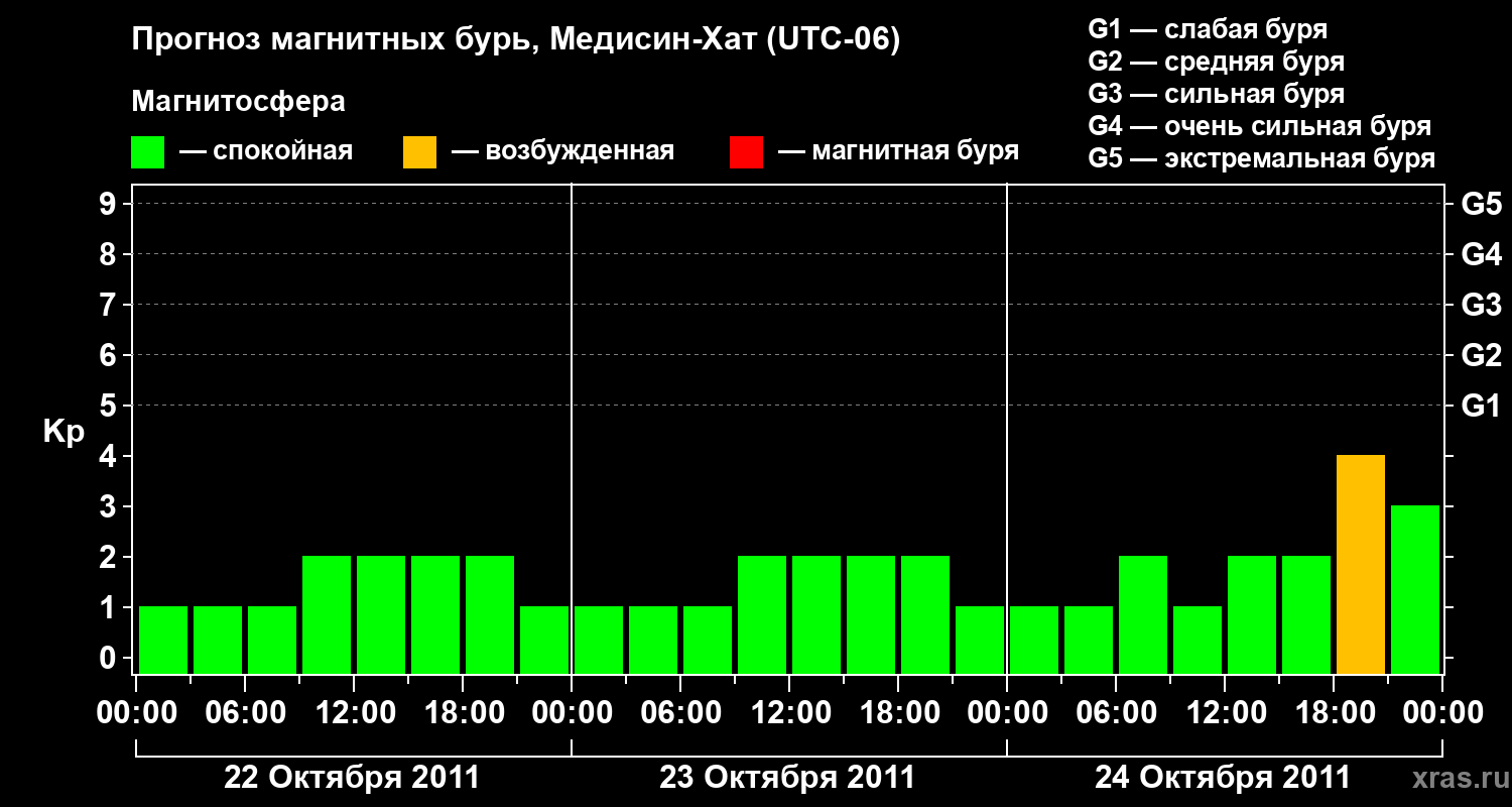 Прогноз магнитных бурь в Медисин-Хате — 22 октября 2011 года