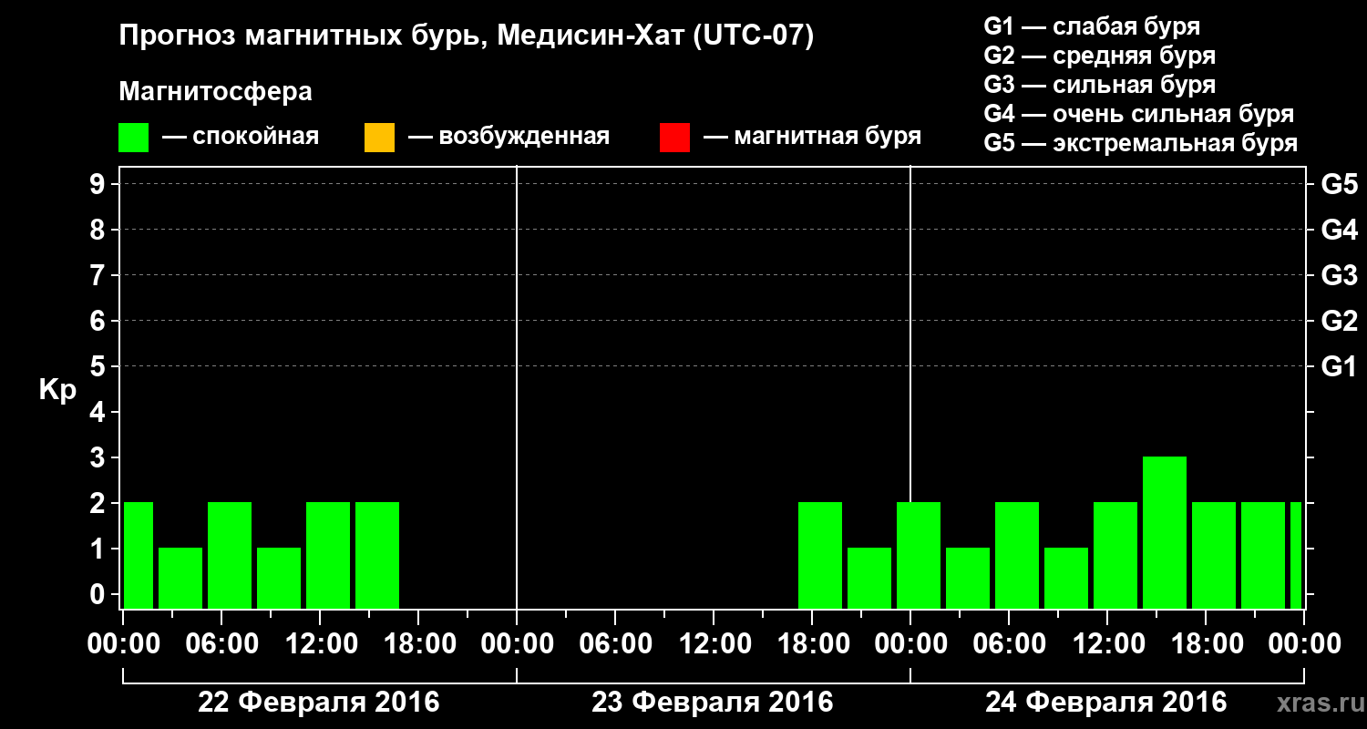 Прогноз магнитных бурь в Медисин-Хате — 22 февраля 2016 года
