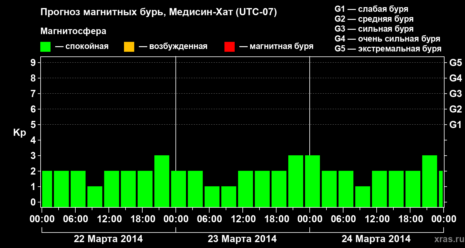 Прогноз магнитных бурь в Медисин-Хате — 22 марта 2014 года