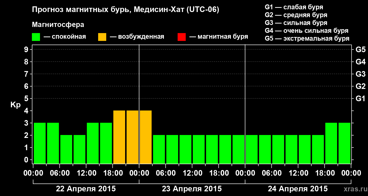Прогноз магнитных бурь в Медисин-Хате — 22 апреля 2015 года