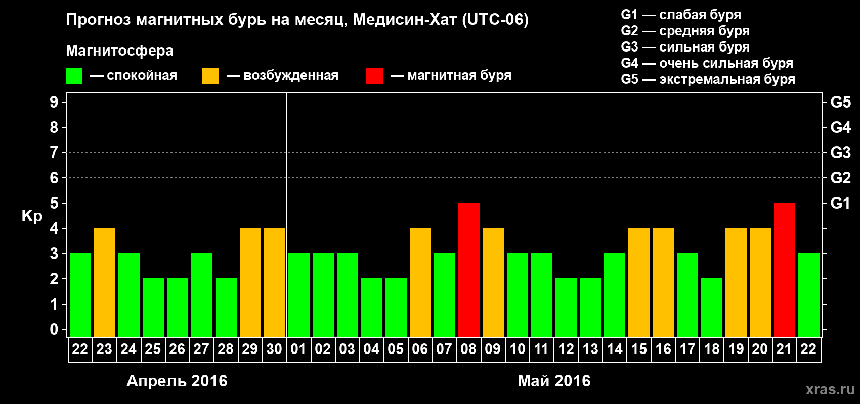 Прогноз магнитных бурь в Медисин-Хате — 22 апреля 2016 года