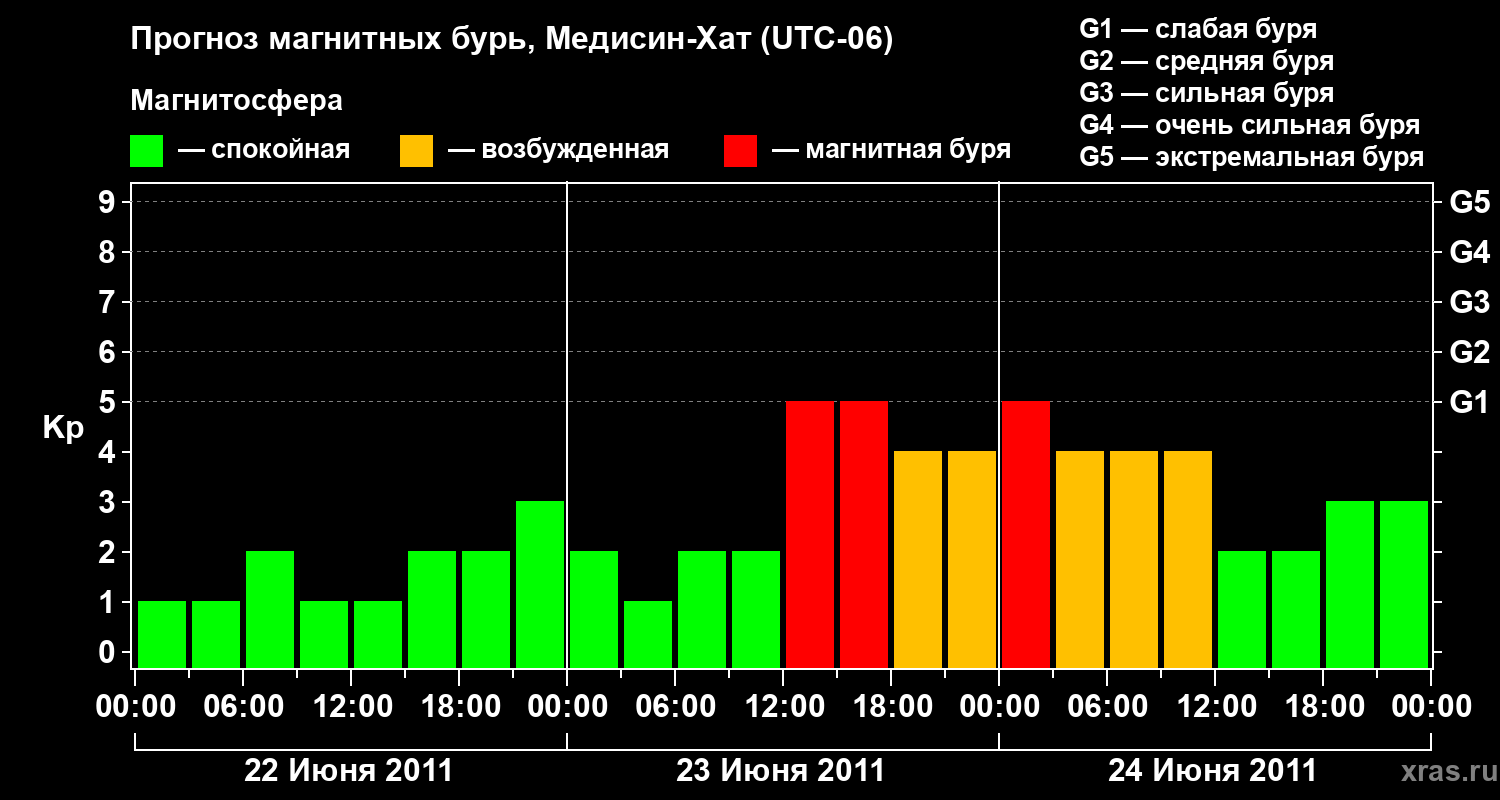 Прогноз магнитных бурь в Медисин-Хате — 22 июня 2011 года