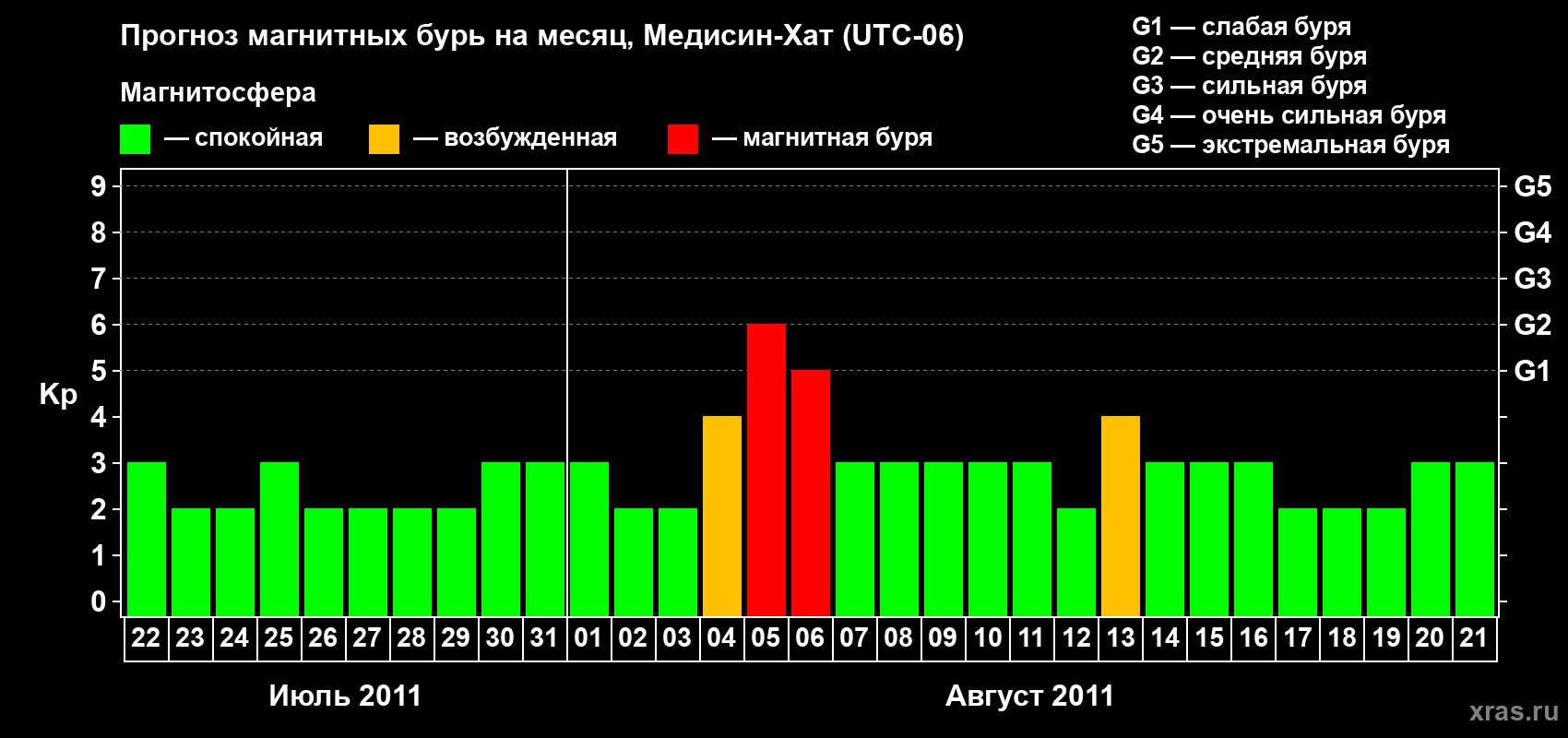 Прогноз магнитных бурь в Медисин-Хате — 22 июля 2011 года