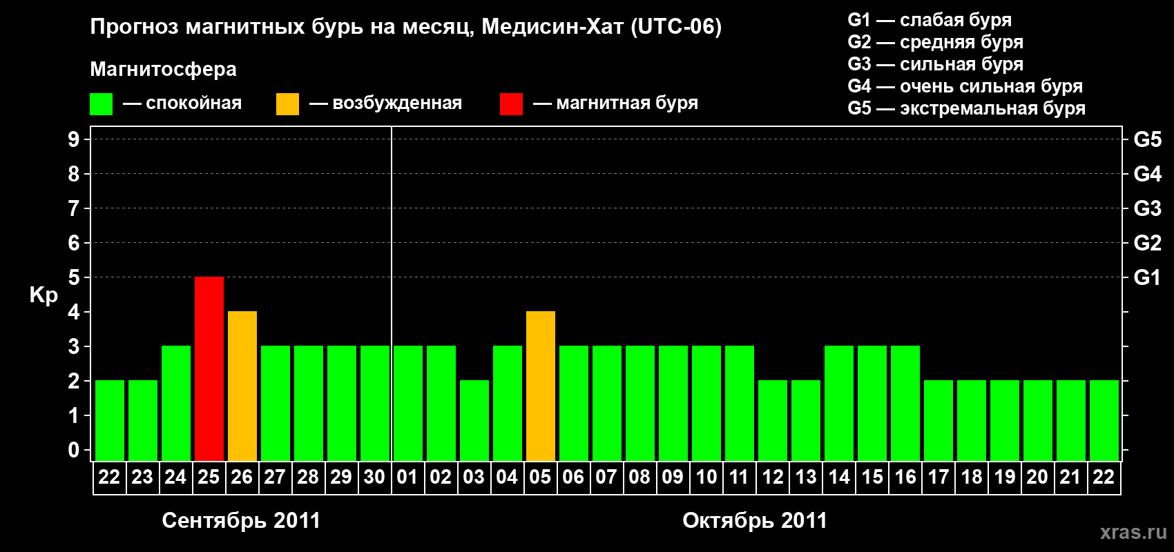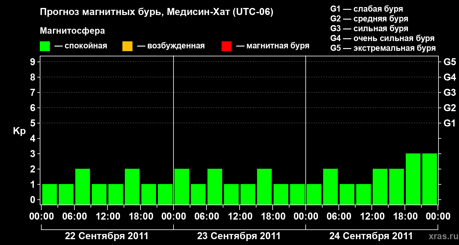 Прогноз магнитных бурь в Медисин-Хате — 22 сентября 2011 года