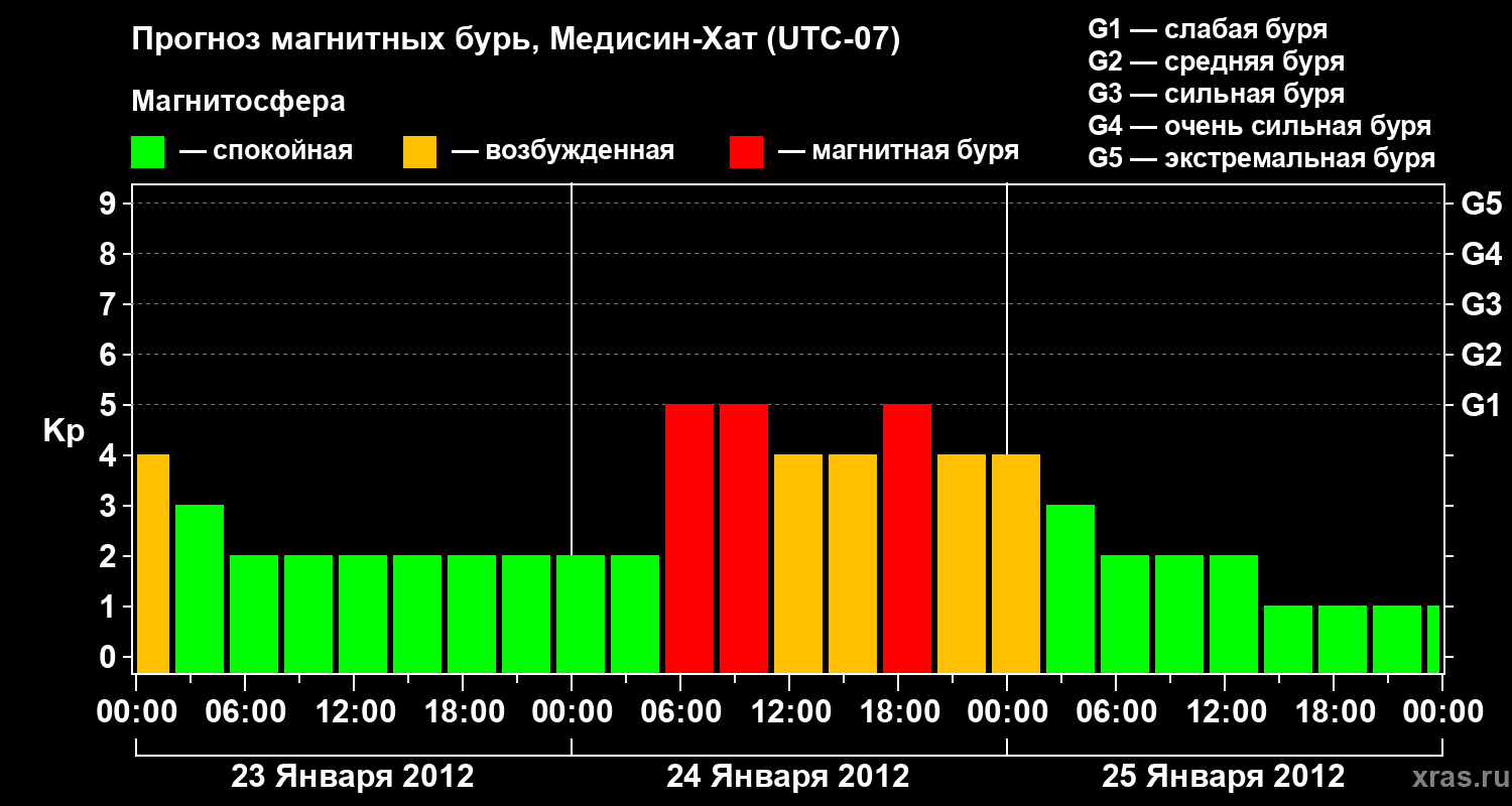 Прогноз магнитных бурь в Медисин-Хате — 23 января 2012 года
