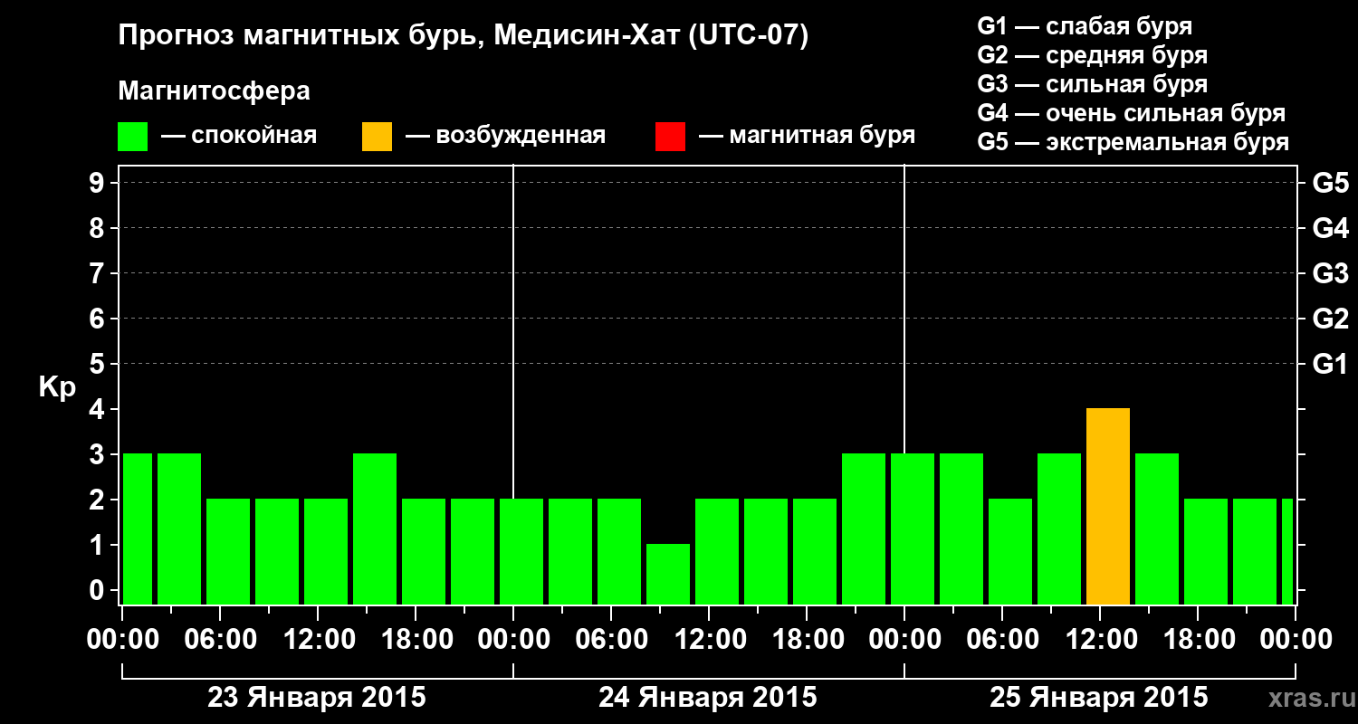 Прогноз магнитных бурь в Медисин-Хате на 23 января 2015 года