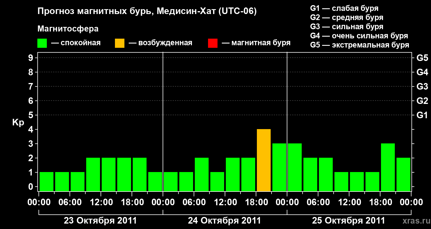 Прогноз магнитных бурь в Медисин-Хате — 23 октября 2011 года
