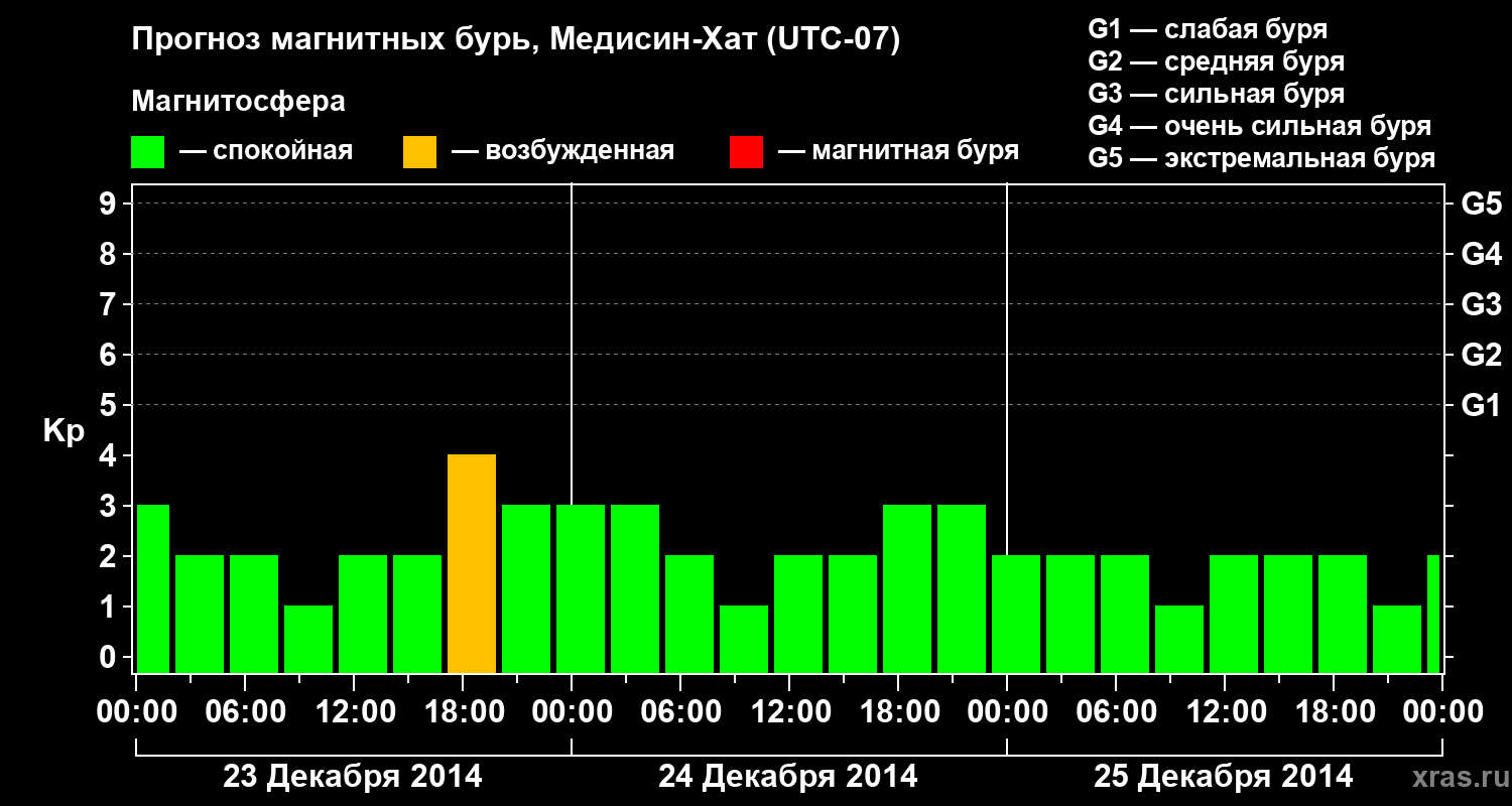 Прогноз магнитных бурь в Медисин-Хате — 23 декабря 2014 года