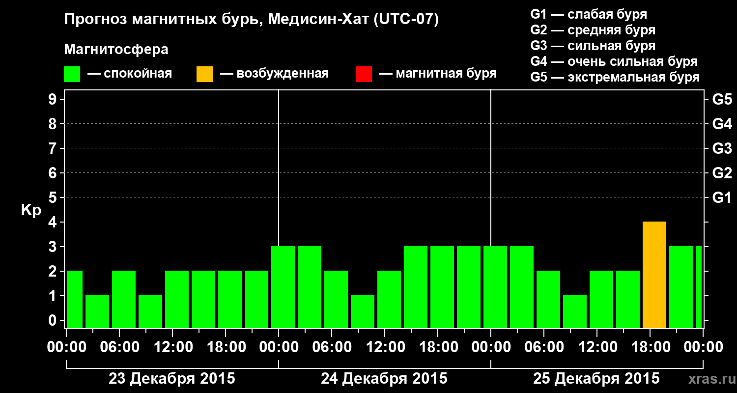 Прогноз магнитных бурь в Медисин-Хате — 23 декабря 2015 года