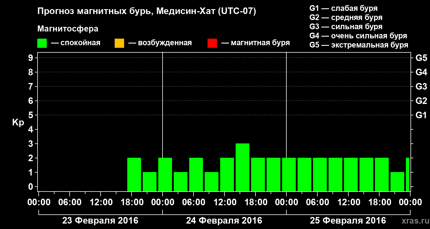 Прогноз магнитных бурь в Медисин-Хате — 23 февраля 2016 года