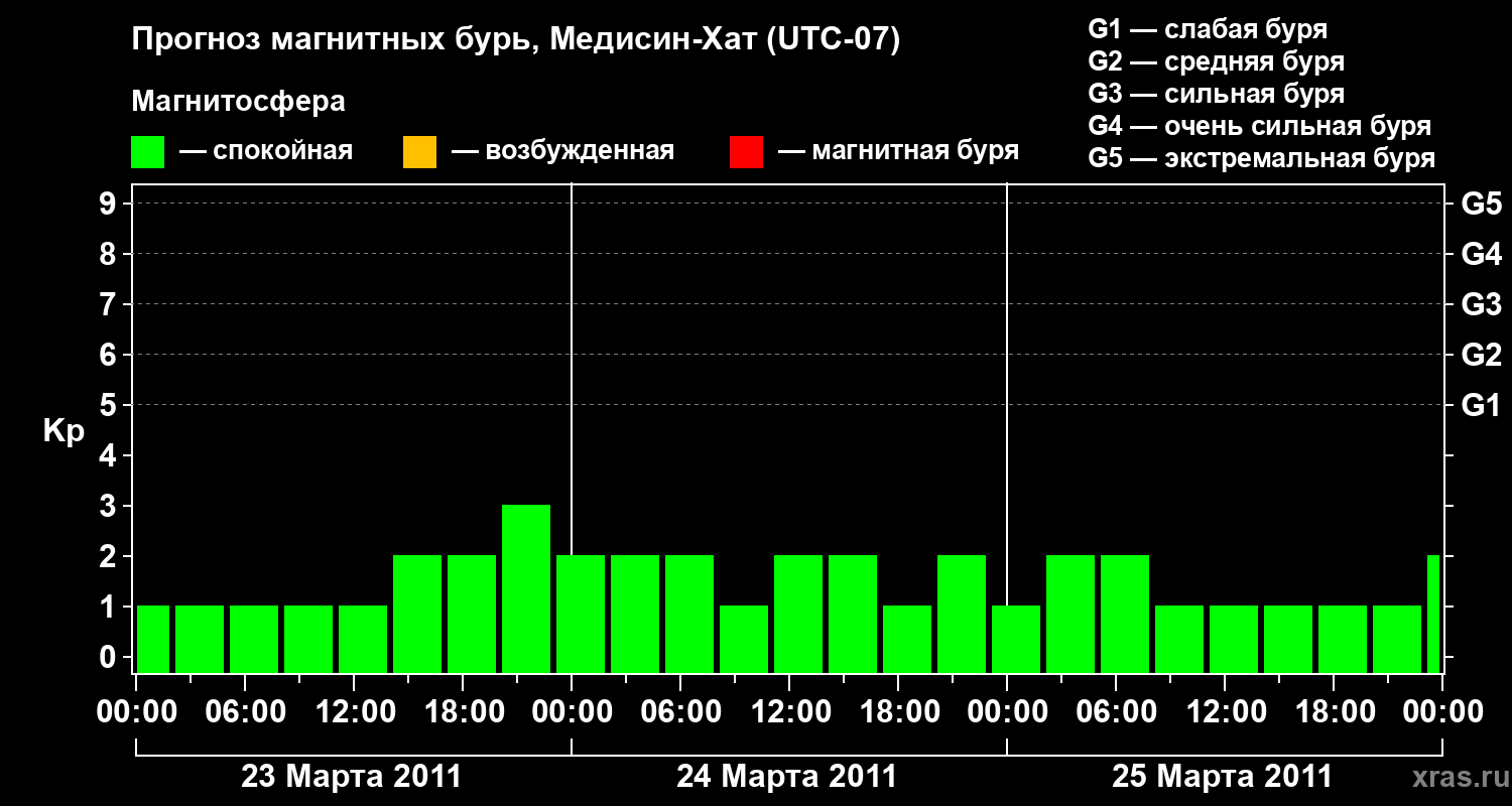 Прогноз магнитных бурь в Медисин-Хате — 23 марта 2011 года