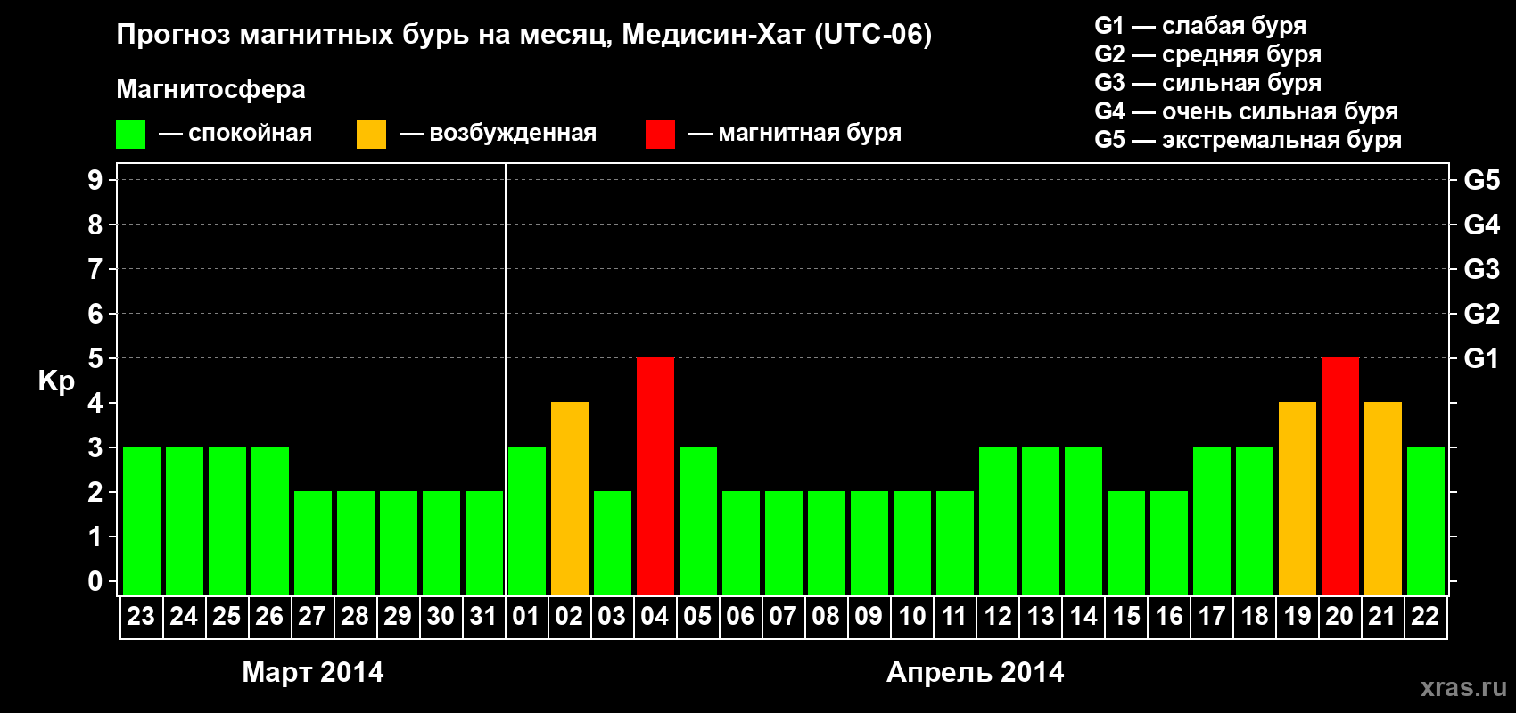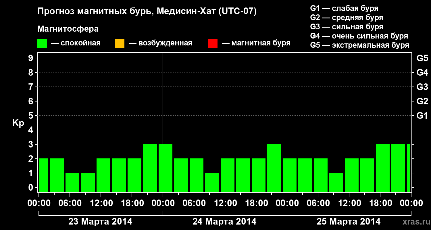 Прогноз магнитных бурь в Медисин-Хате — 23 марта 2014 года