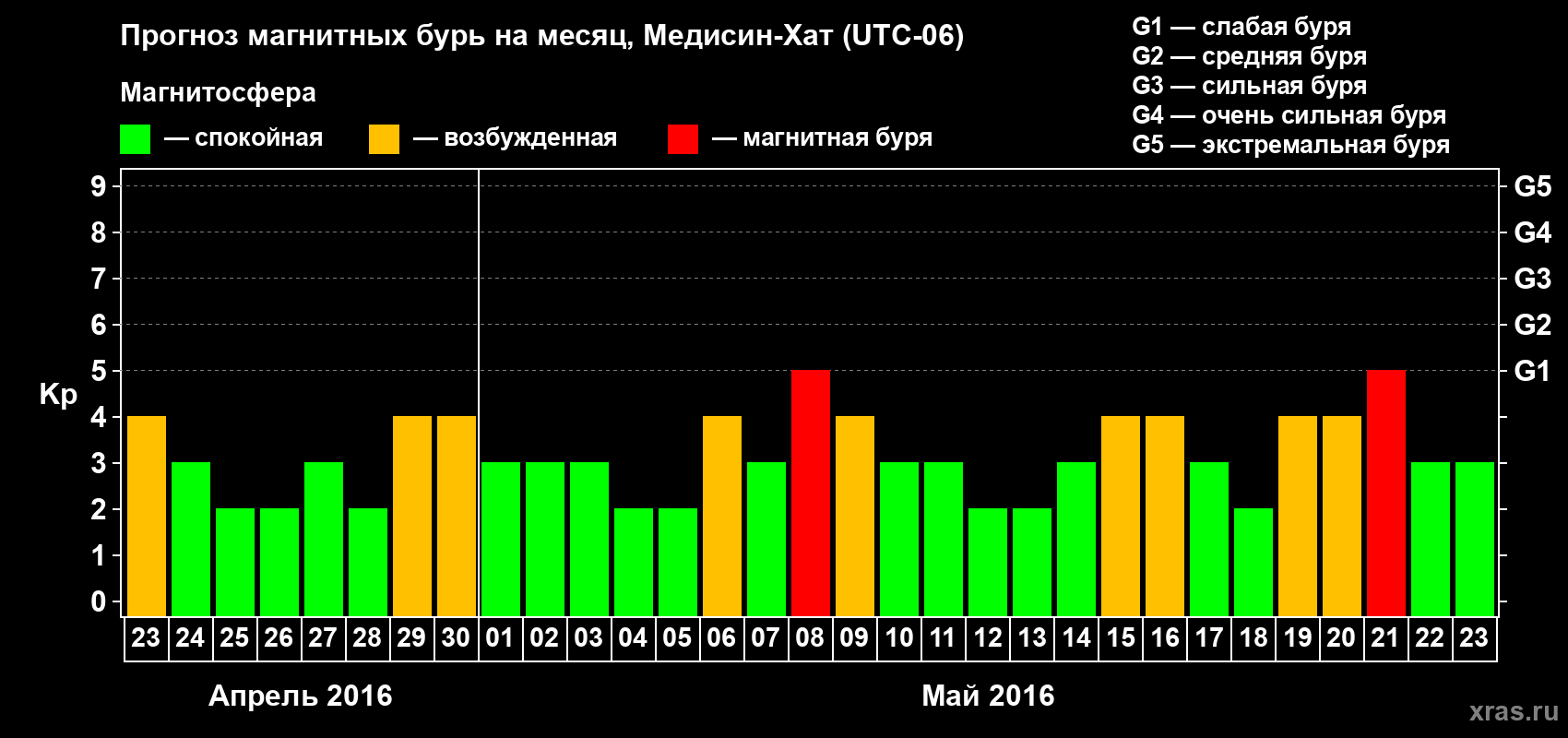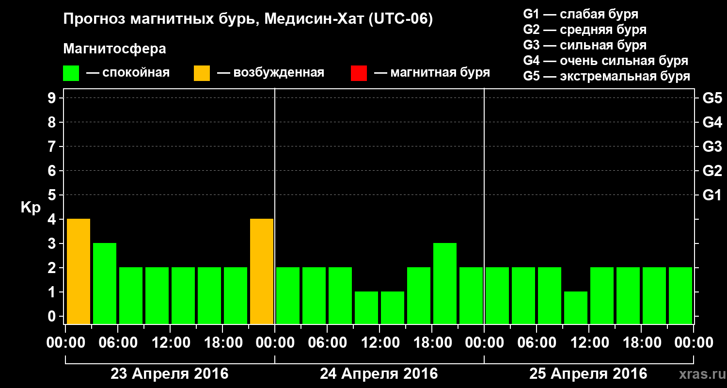 Прогноз магнитных бурь в Медисин-Хате — 23 апреля 2016 года