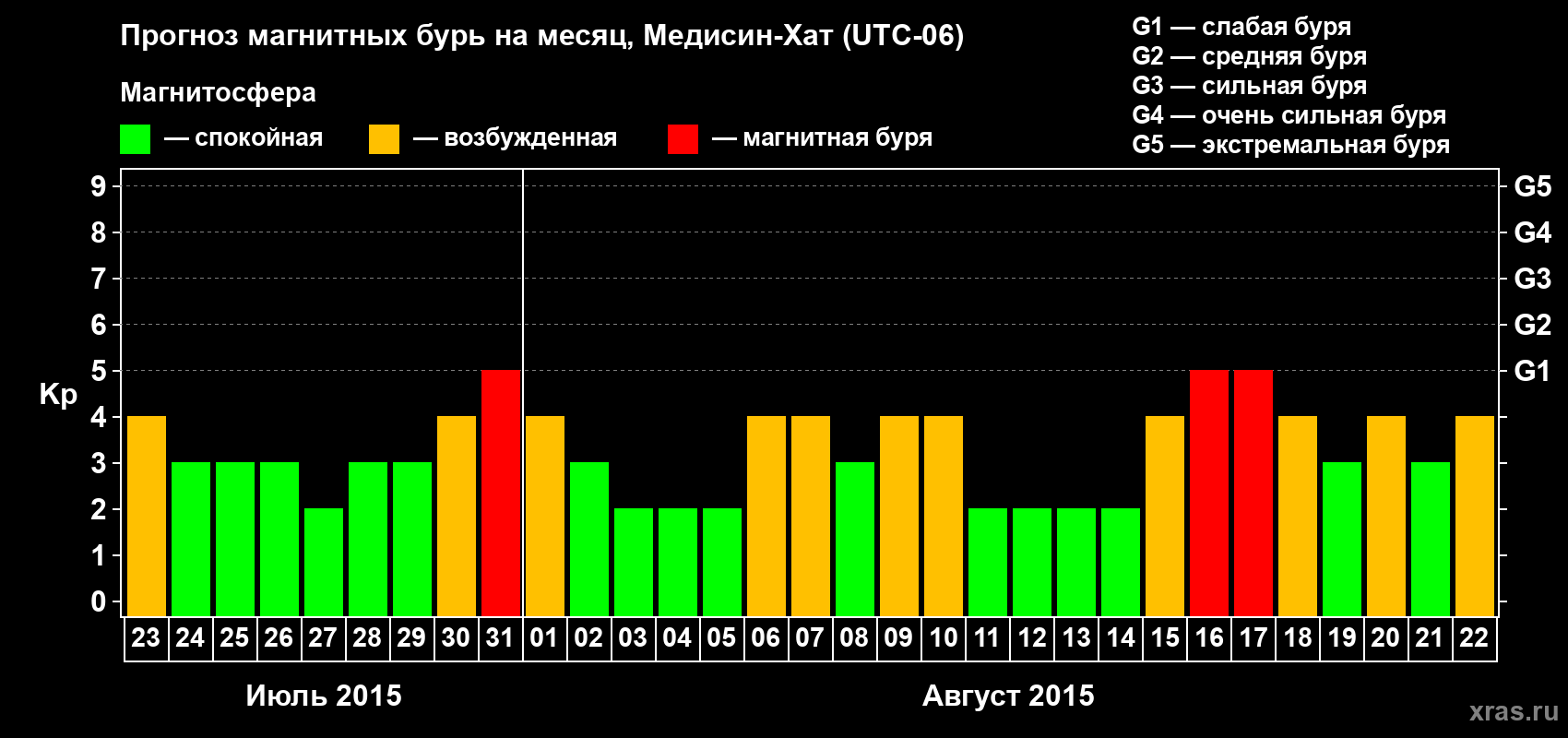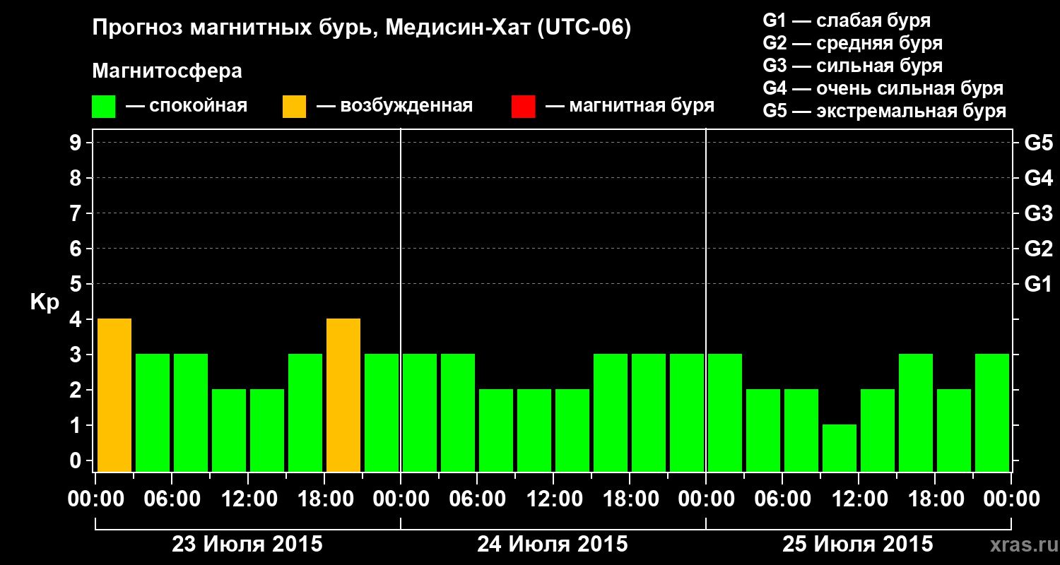 Прогноз магнитных бурь в Медисин-Хате — 23 июля 2015 года
