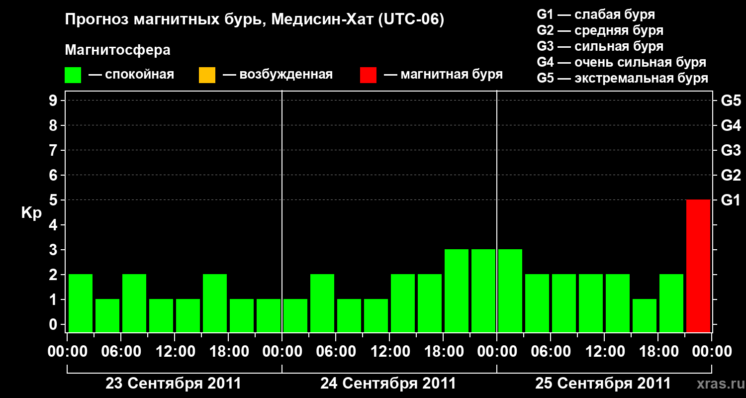 Прогноз магнитных бурь в Медисин-Хате — 23 сентября 2011 года