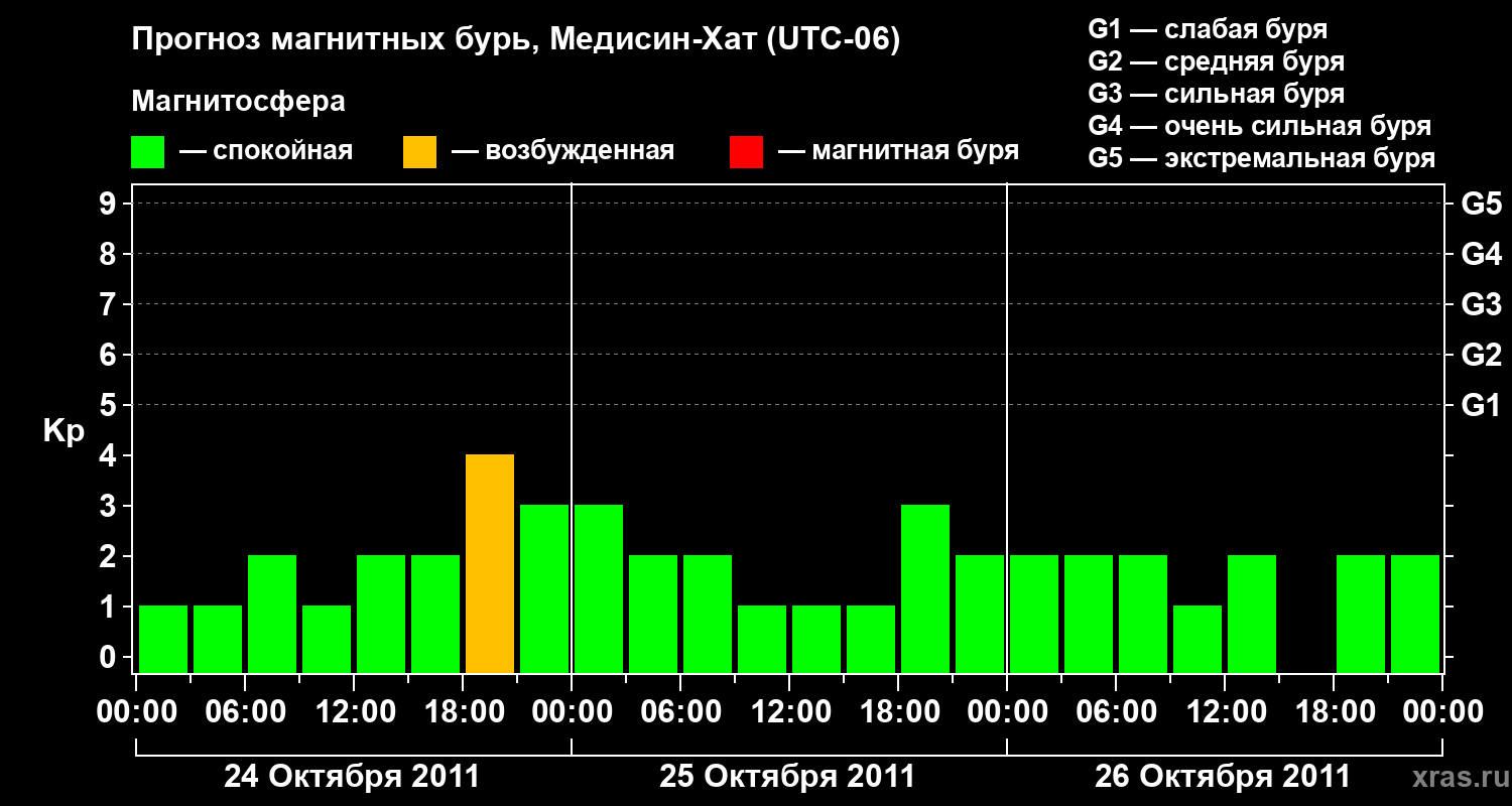 Прогноз магнитных бурь в Медисин-Хате — 24 октября 2011 года