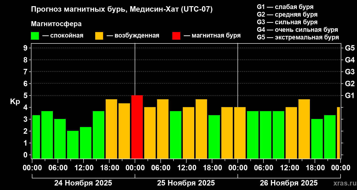 Прогноз магнитных бурь в Медисин-Хате — 24 ноября 2025 года