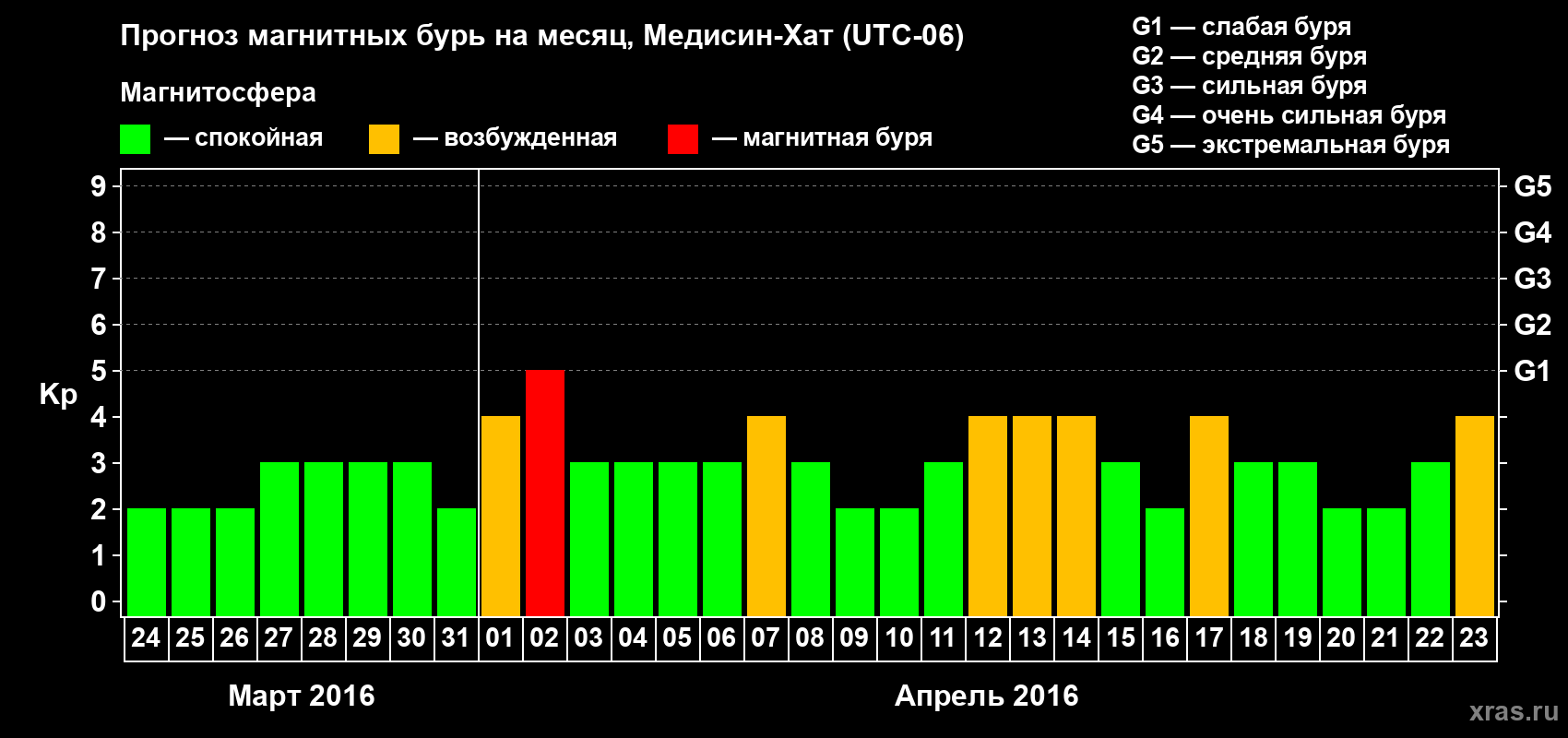 Прогноз магнитных бурь в Медисин-Хате — 24 марта 2016 года