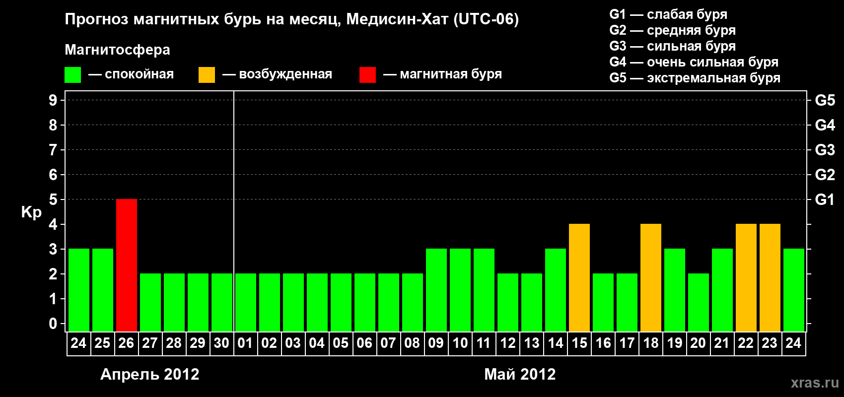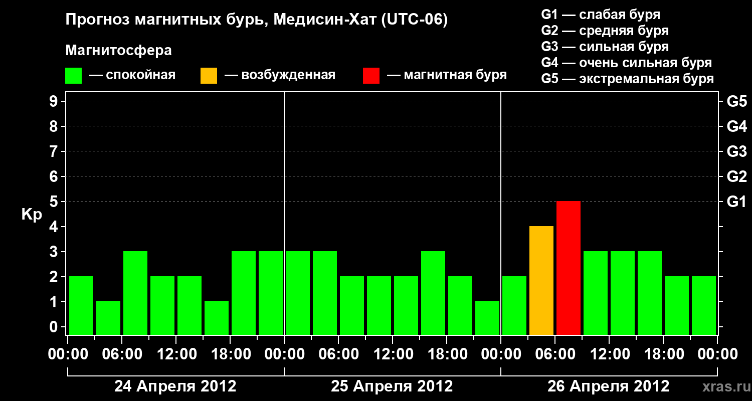 Прогноз магнитных бурь в Медисин-Хате — 24 апреля 2012 года