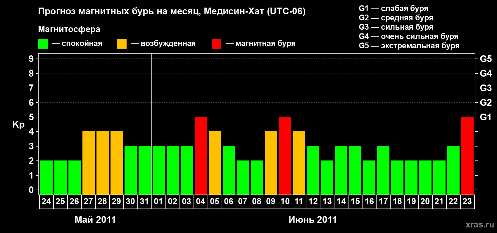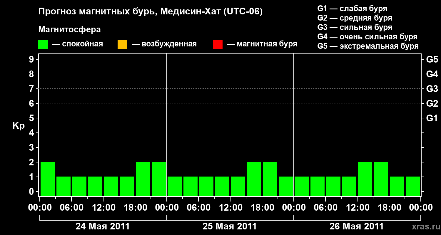 Прогноз магнитных бурь в Медисин-Хате — 24 мая 2011 года