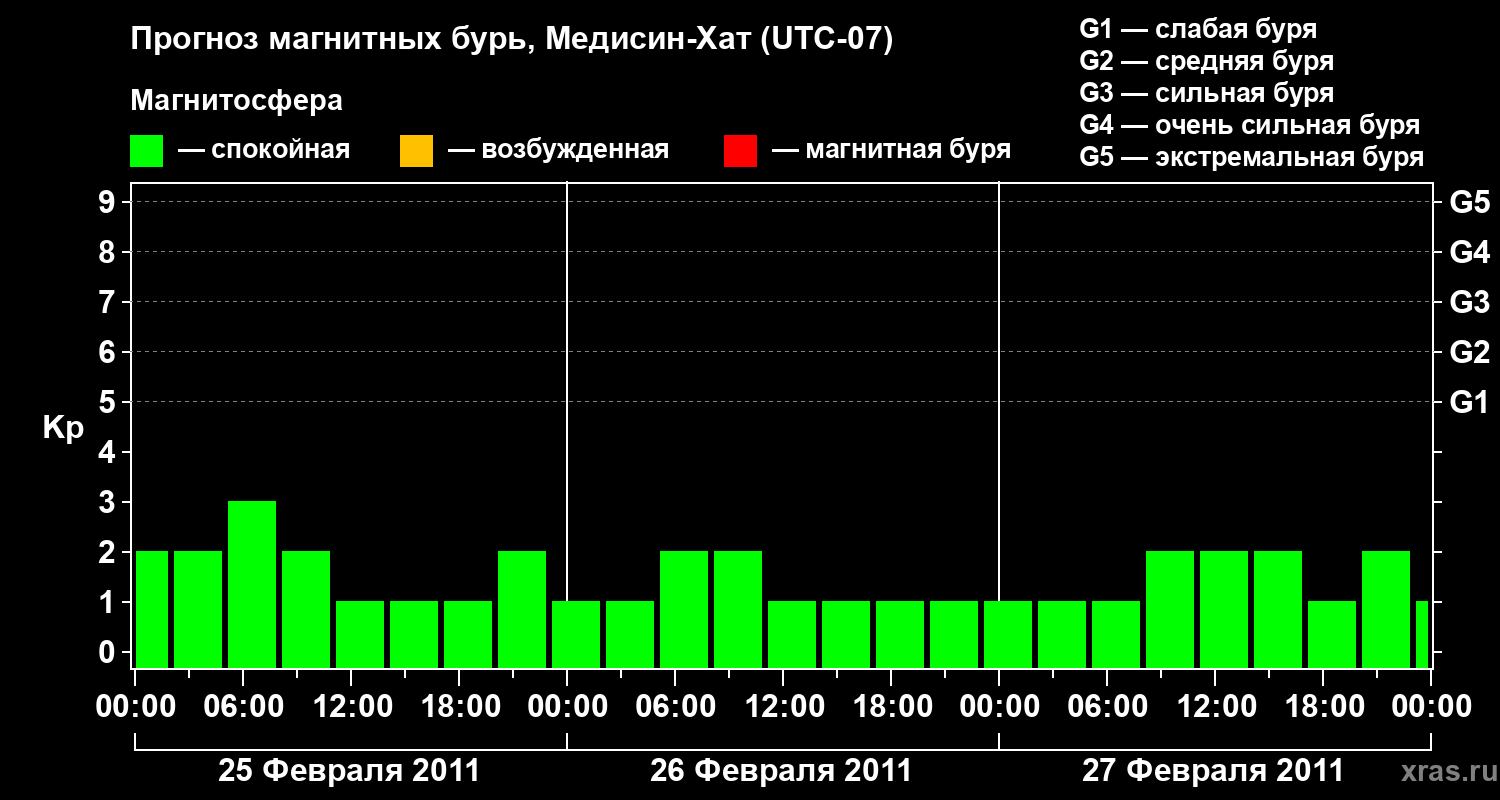 Прогноз магнитных бурь в Медисин-Хате — 25 февраля 2011 года