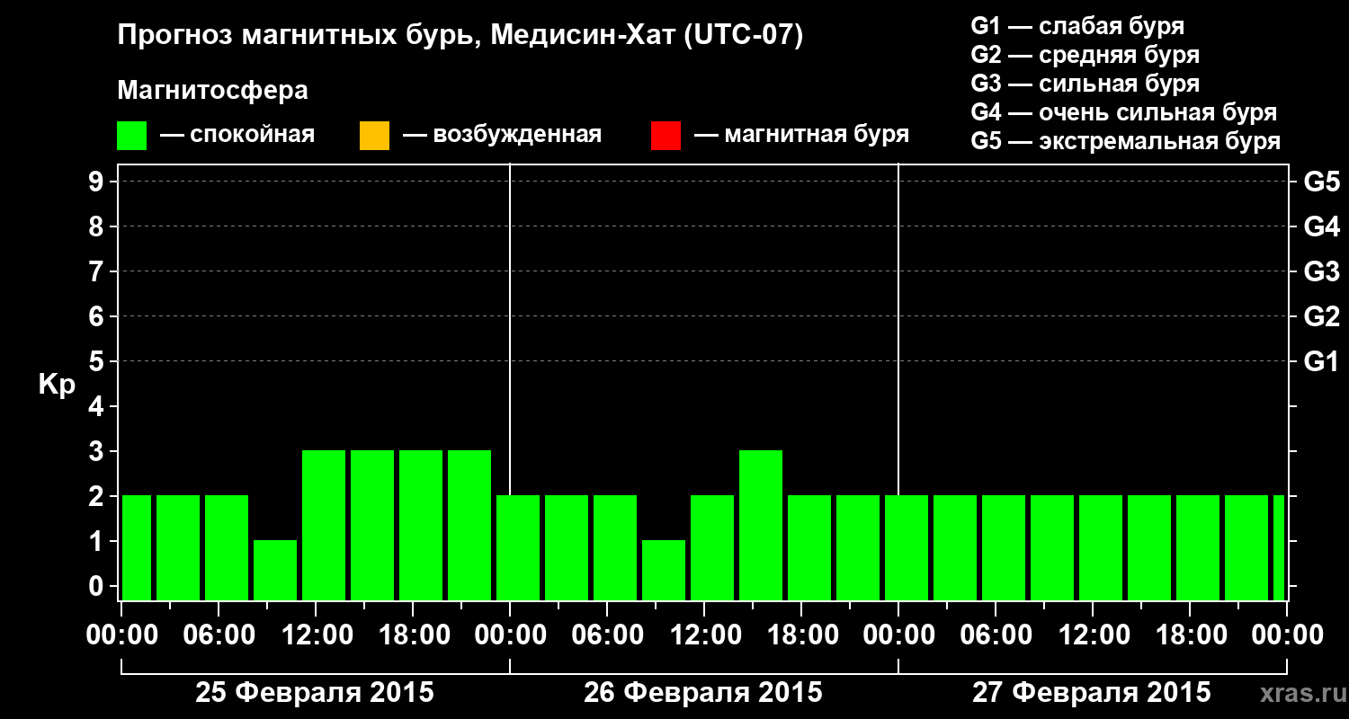 Прогноз магнитных бурь в Медисин-Хате — 25 февраля 2015 года