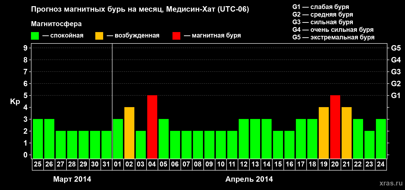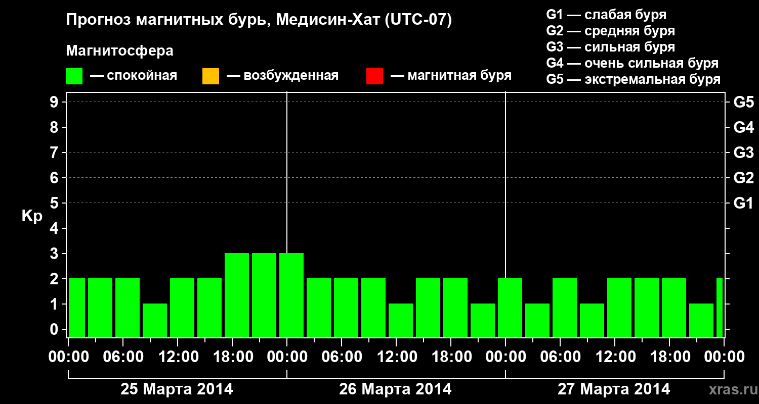 Прогноз магнитных бурь в Медисин-Хате — 25 марта 2014 года