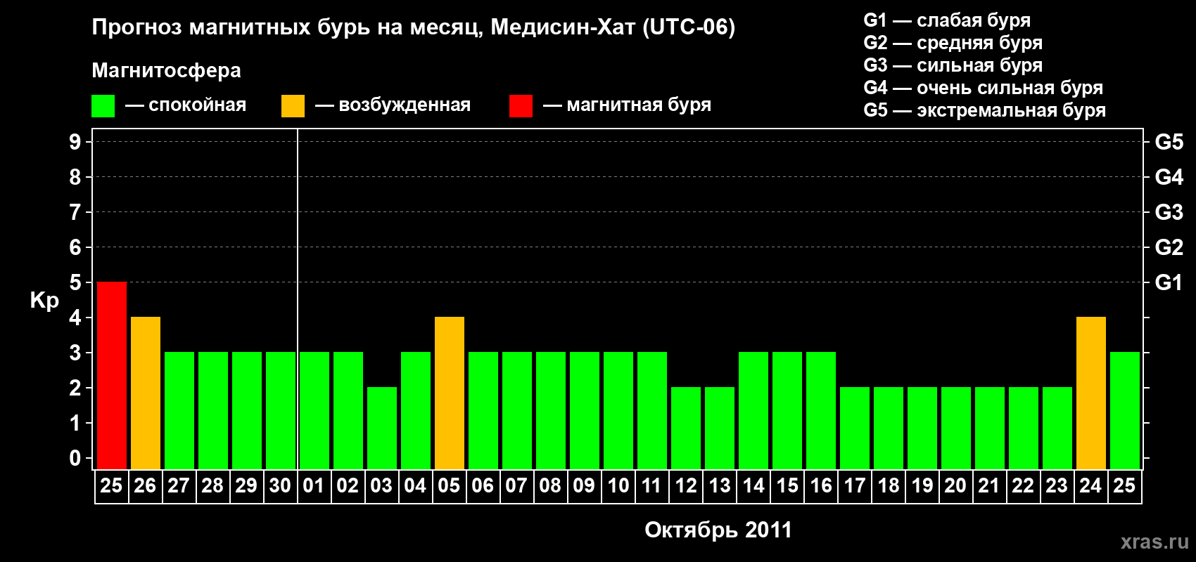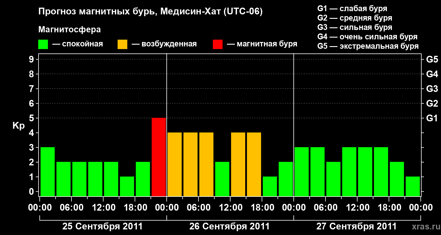Прогноз магнитных бурь в Медисин-Хате — 25 сентября 2011 года