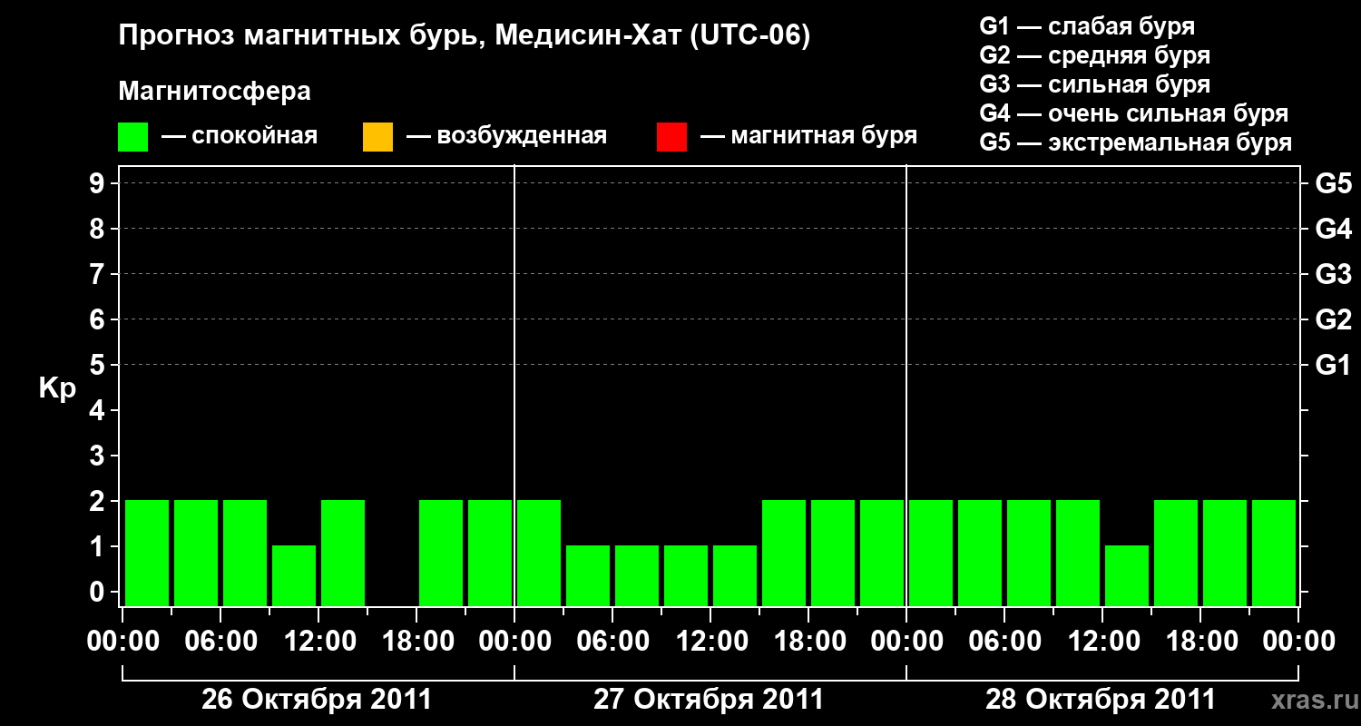 Прогноз магнитных бурь в Медисин-Хате — 26 октября 2011 года
