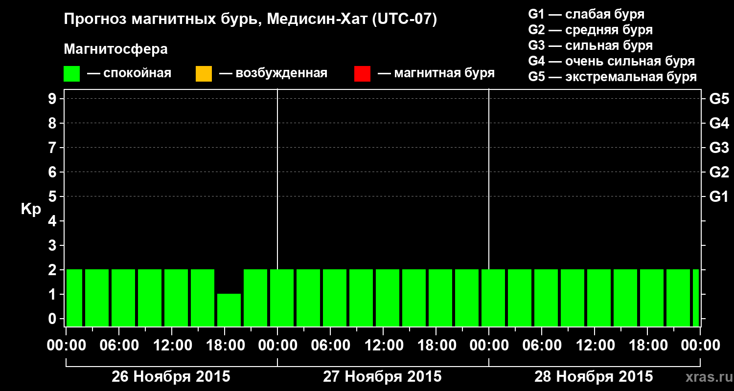 Прогноз магнитных бурь в Медисин-Хате — 26 ноября 2015 года