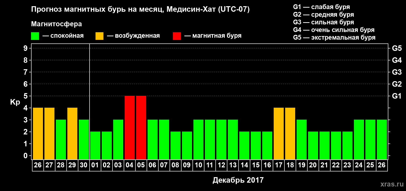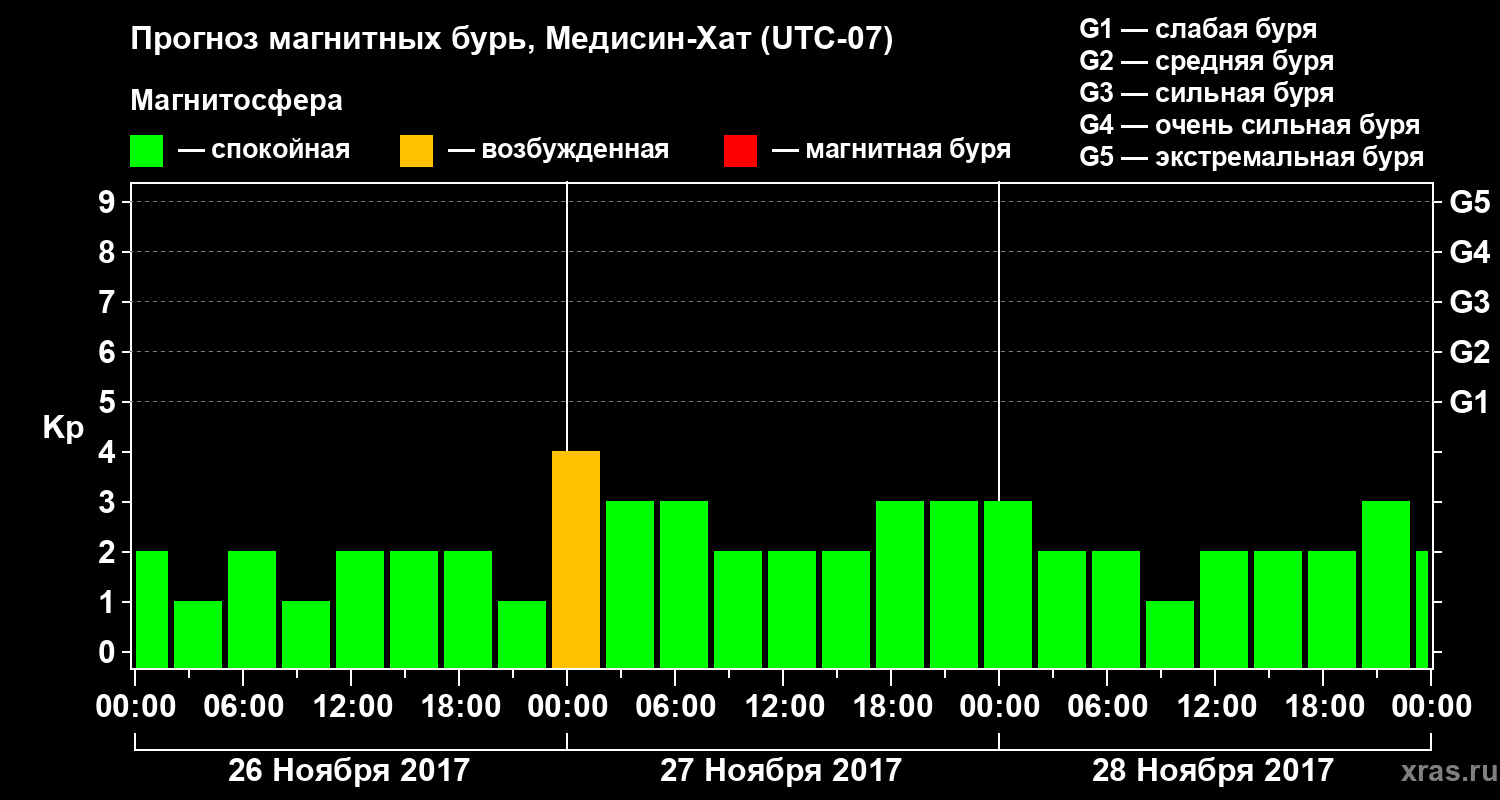 Прогноз магнитных бурь в Медисин-Хате — 26 ноября 2017 года