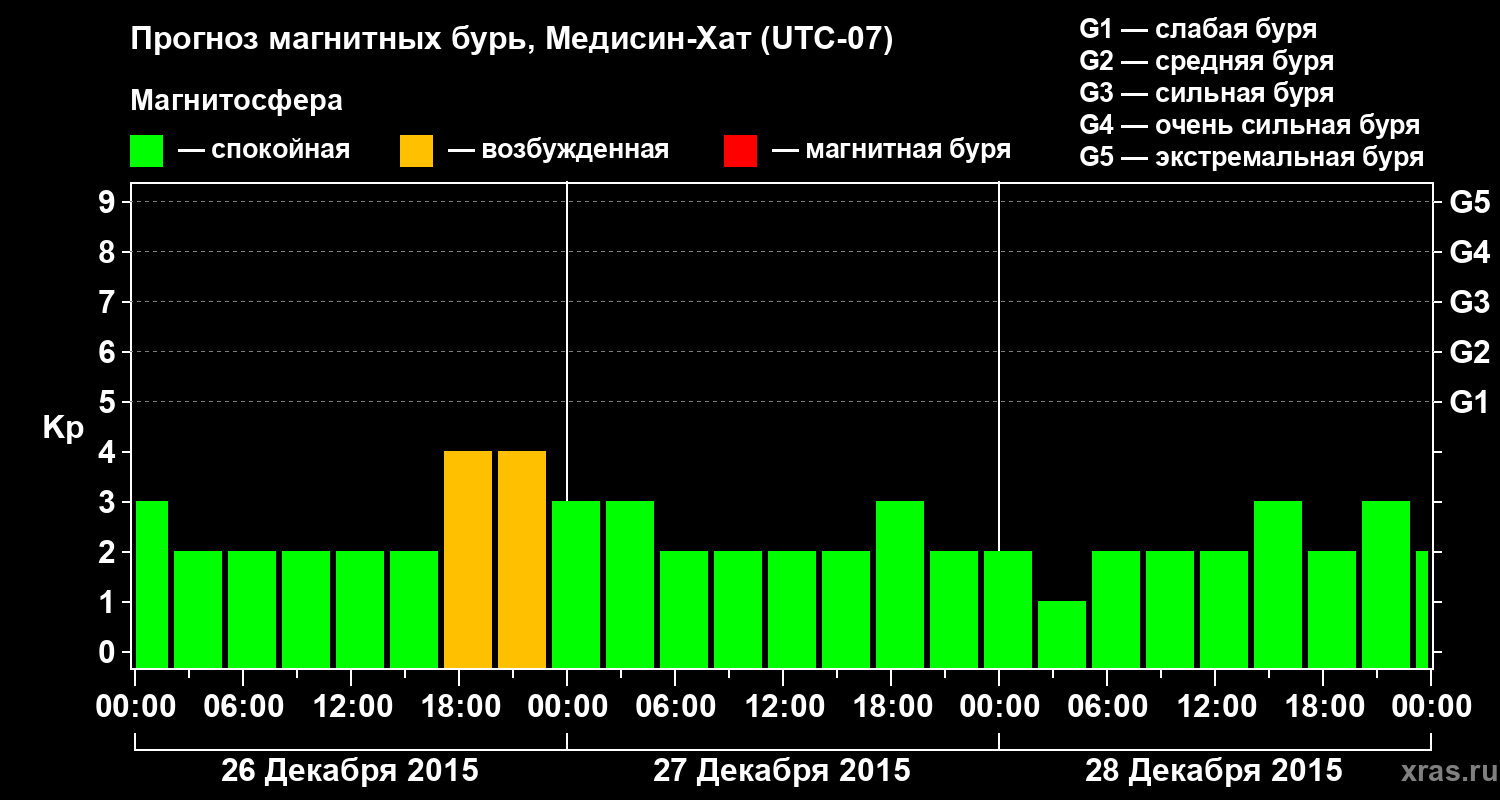 Прогноз магнитных бурь в Медисин-Хате — 26 декабря 2015 года