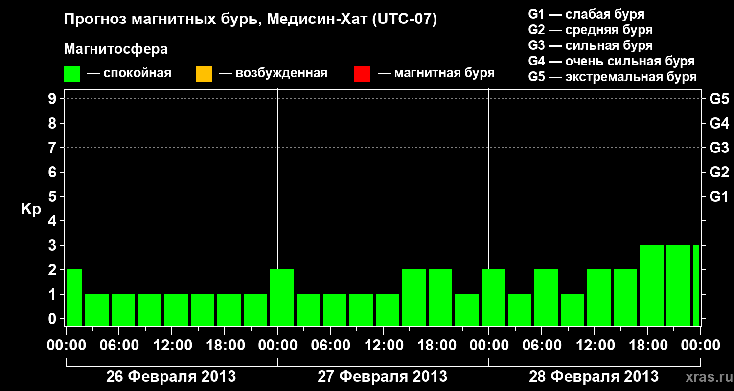 Прогноз магнитных бурь в Медисин-Хате — 26 февраля 2013 года