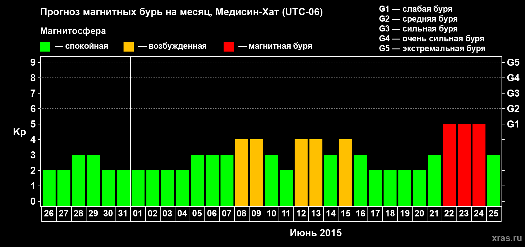 Прогноз магнитных бурь в Медисин-Хате — 26 мая 2015 года