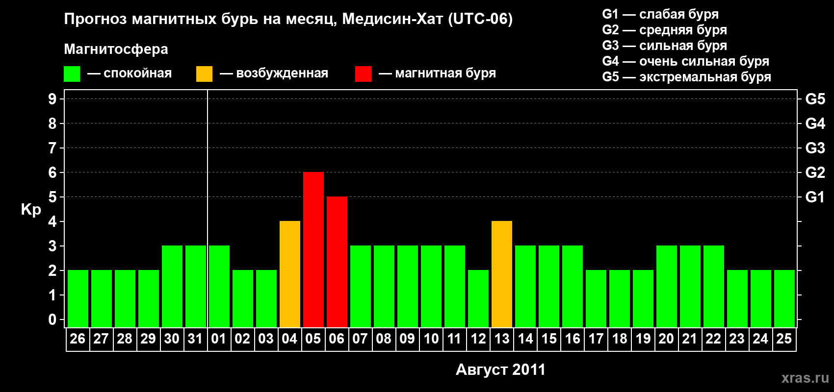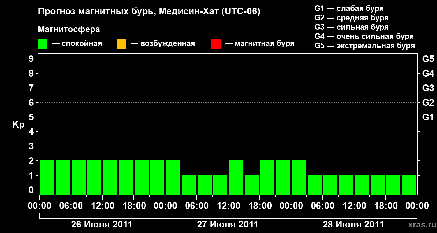 Прогноз магнитных бурь в Медисин-Хате — 26 июля 2011 года