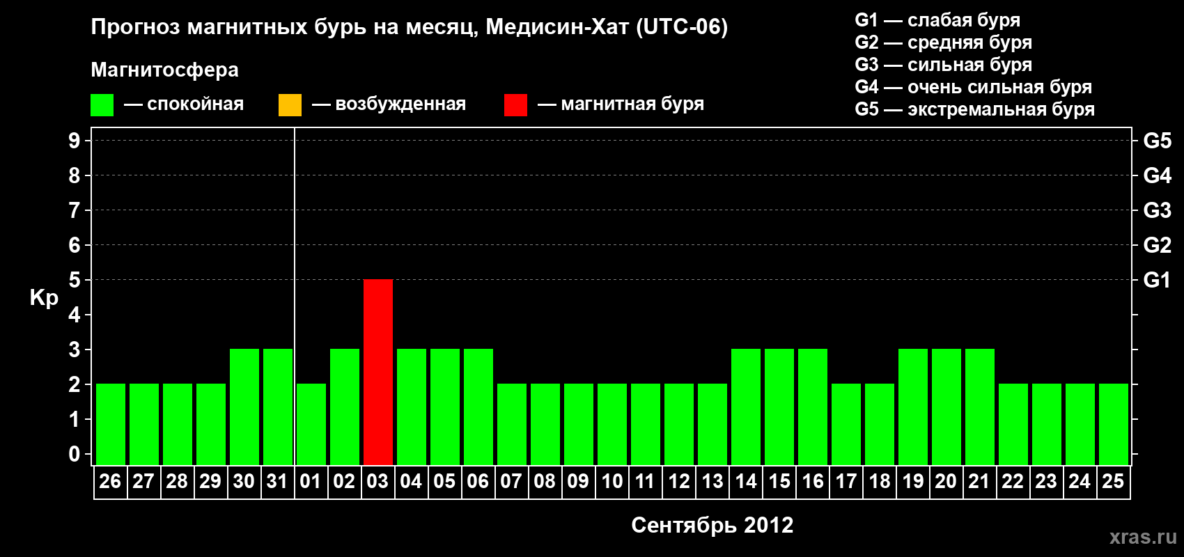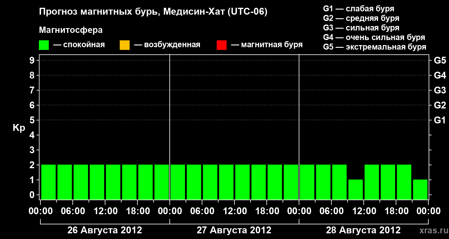 Прогноз магнитных бурь в Медисин-Хате — 26 августа 2012 года