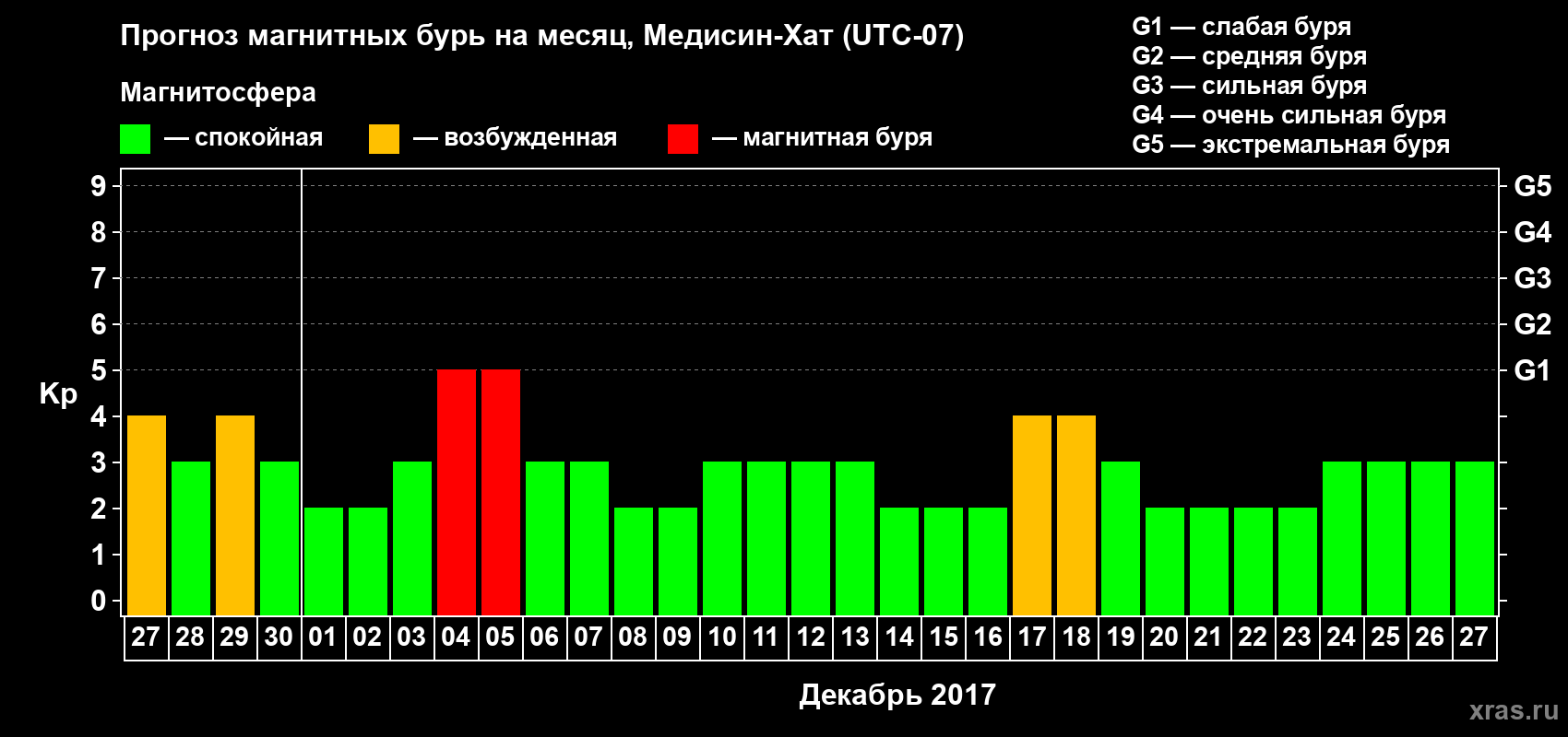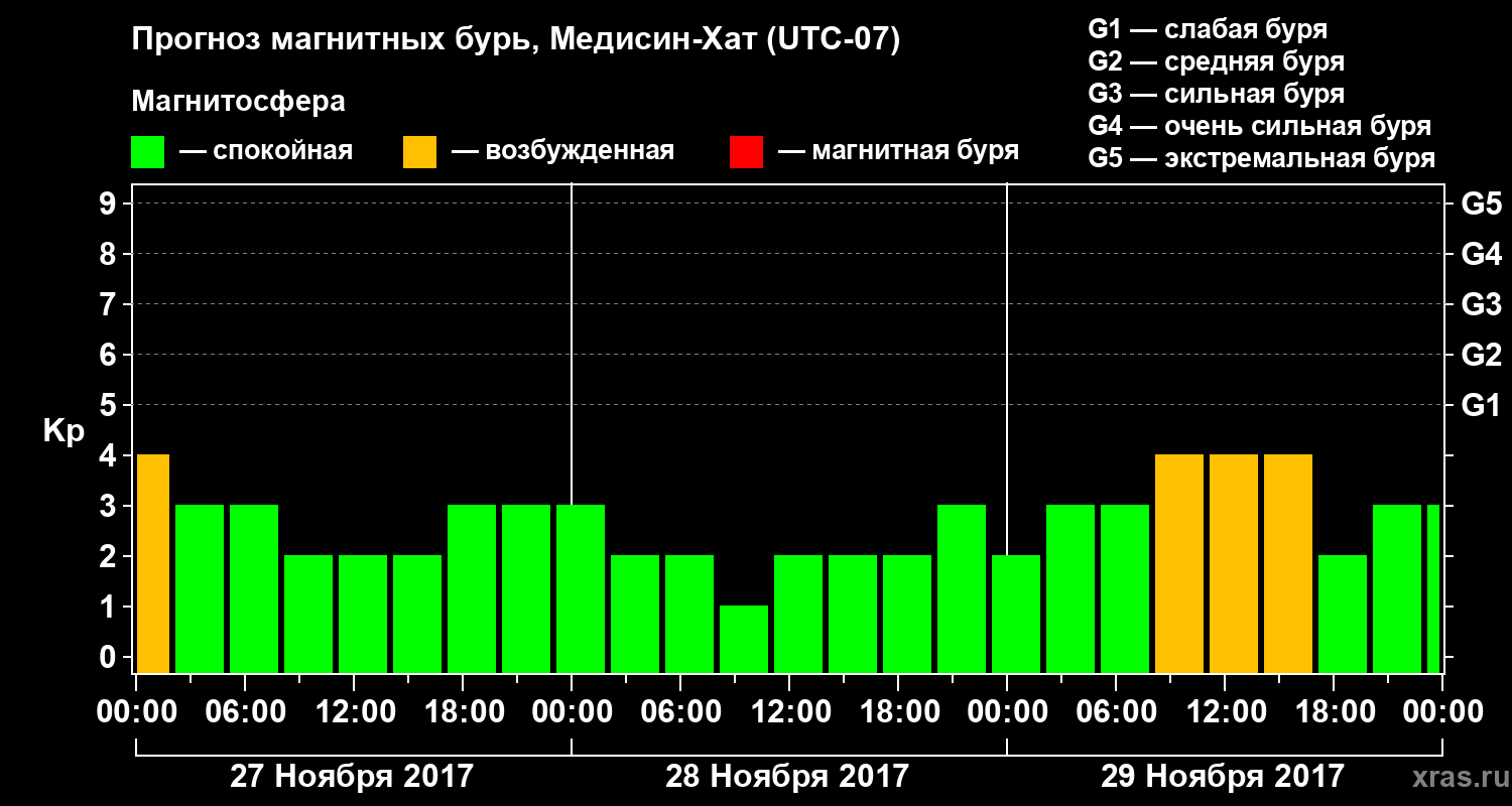 Прогноз магнитных бурь в Медисин-Хате — 27 ноября 2017 года