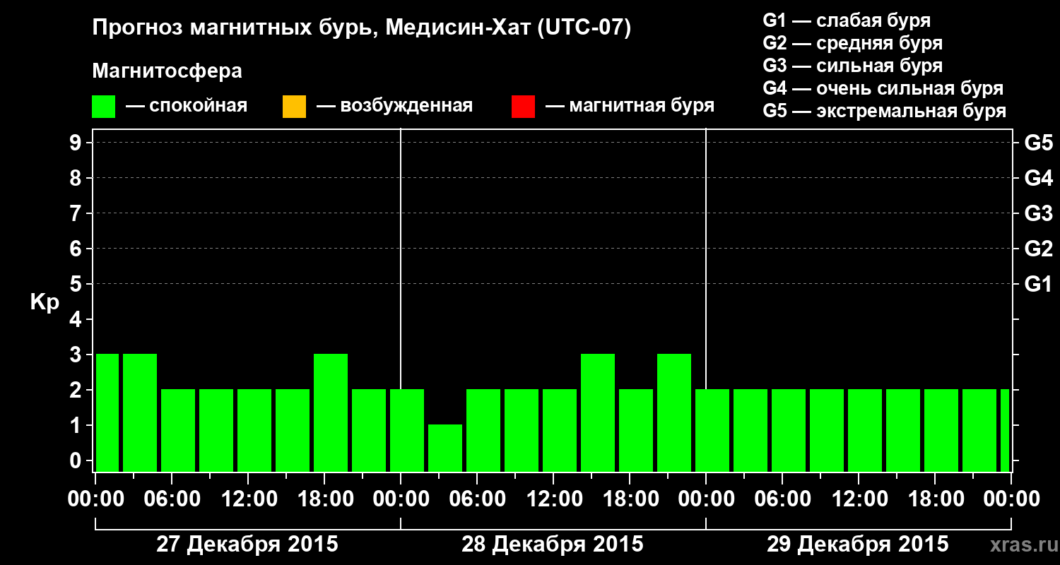 Прогноз магнитных бурь в Медисин-Хате — 27 декабря 2015 года