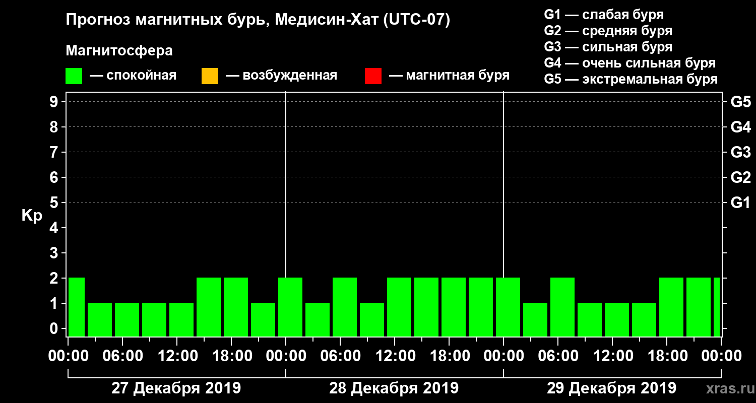 Прогноз магнитных бурь в Медисин-Хате — 27 декабря 2019 года