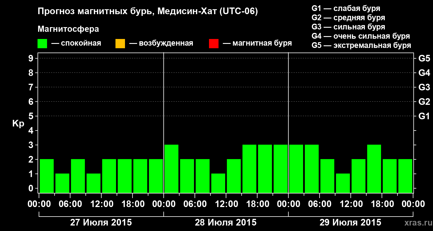 Прогноз магнитных бурь в Медисин-Хате — 27 июля 2015 года