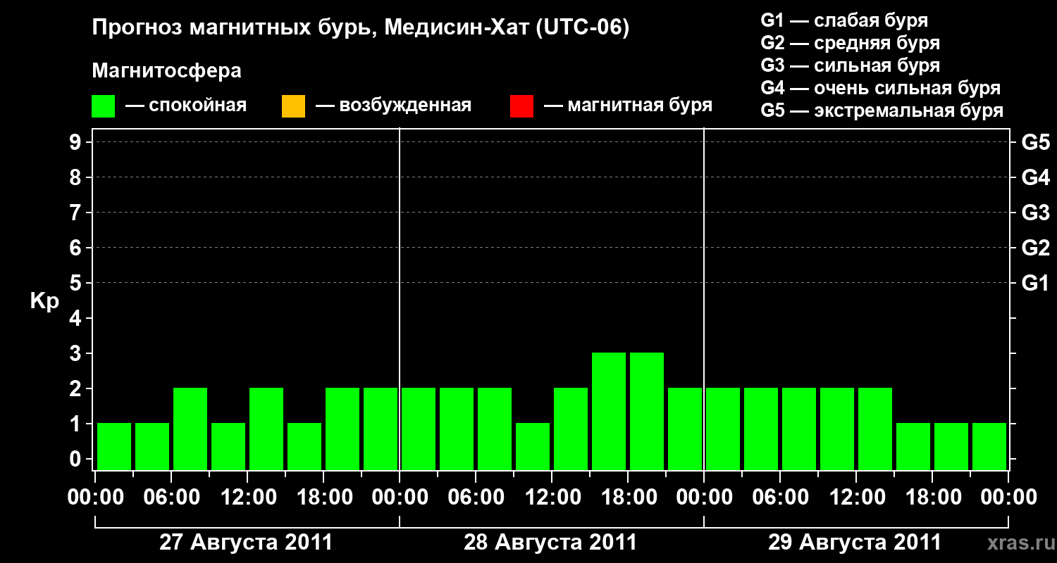 Прогноз магнитных бурь в Медисин-Хате — 27 августа 2011 года