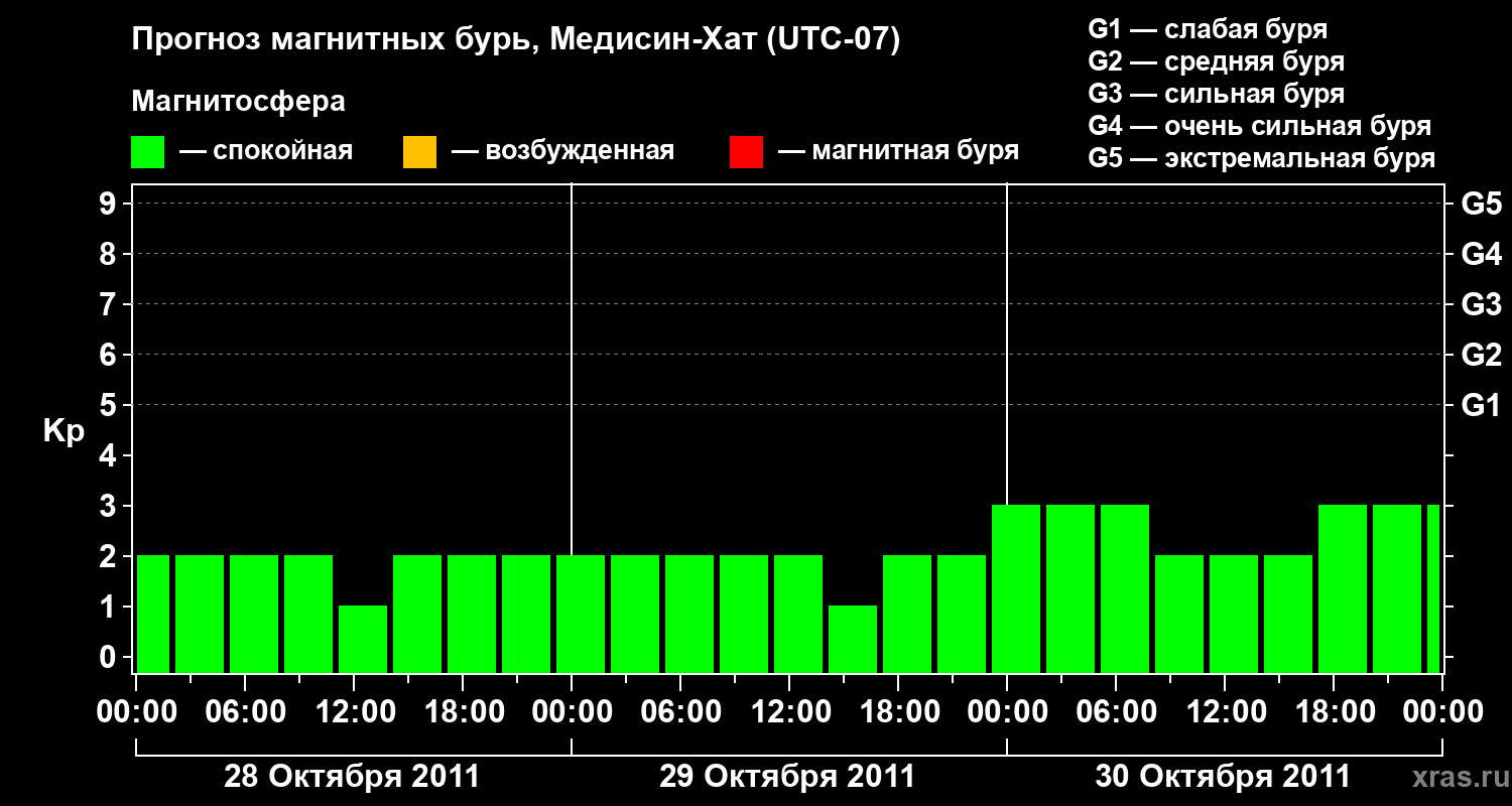 Прогноз магнитных бурь в Медисин-Хате — 28 октября 2011 года