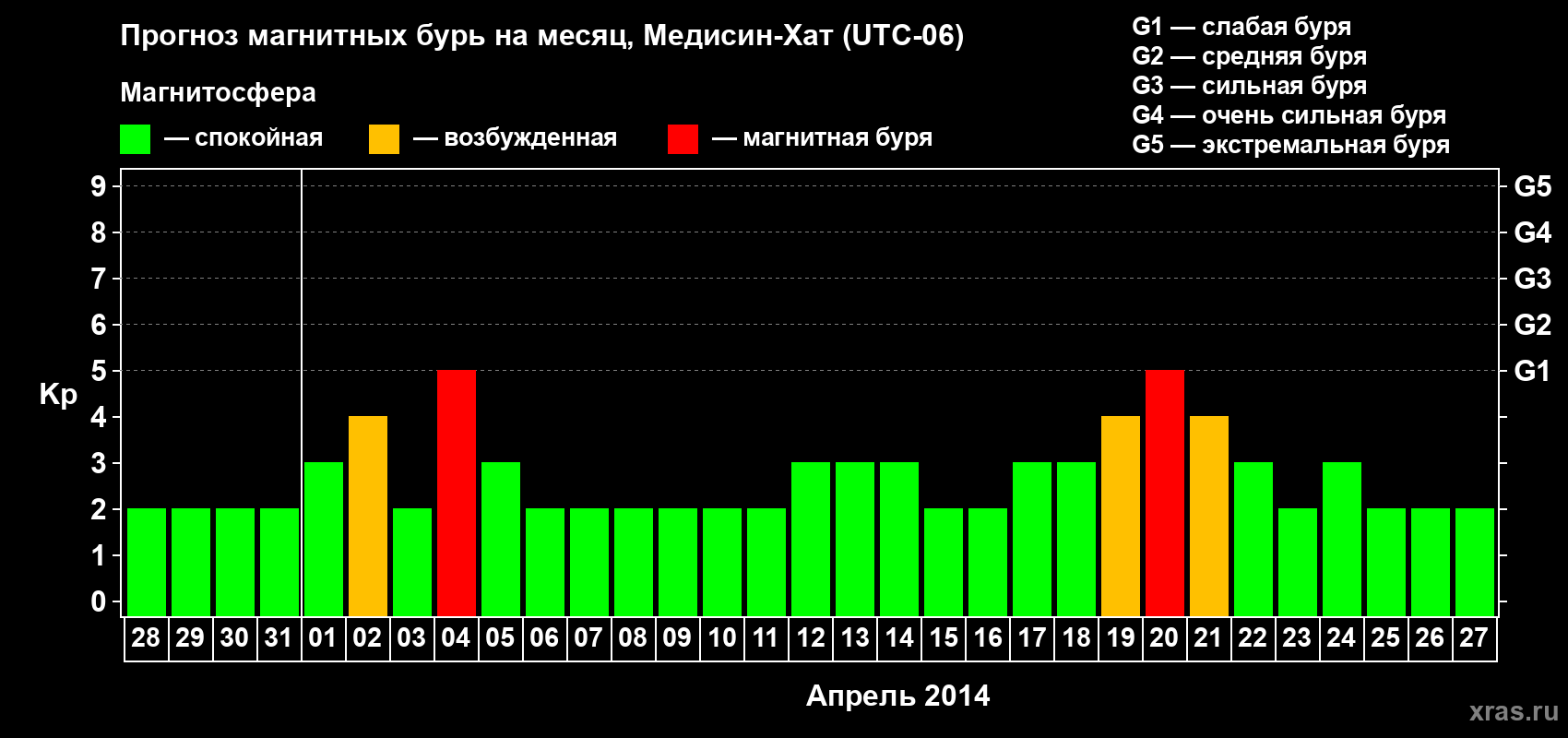 Прогноз магнитных бурь в Медисин-Хате — 28 марта 2014 года